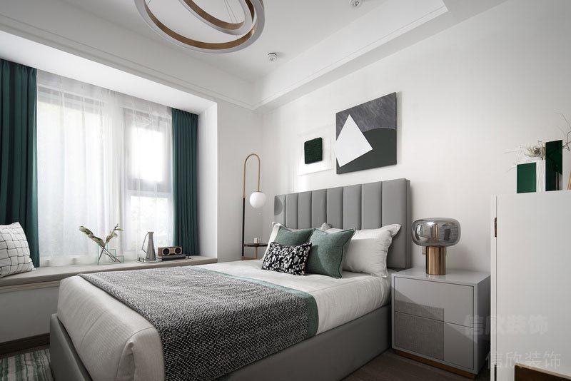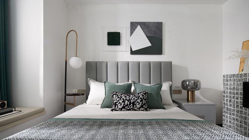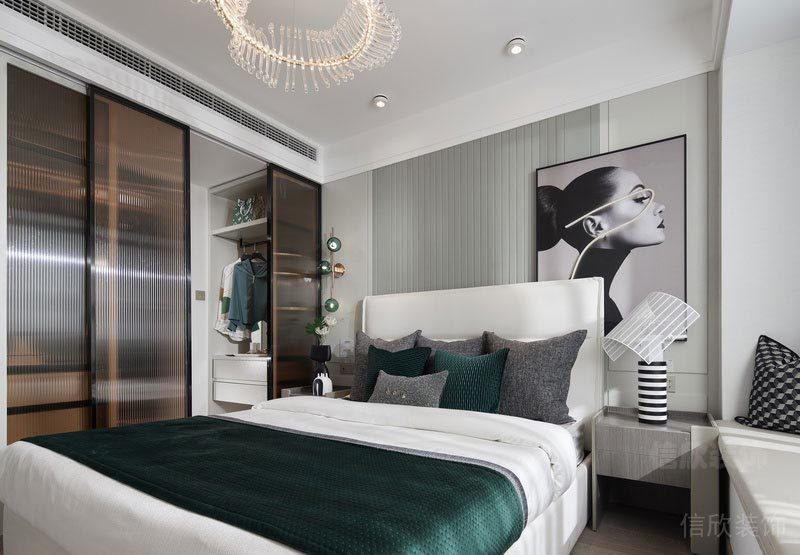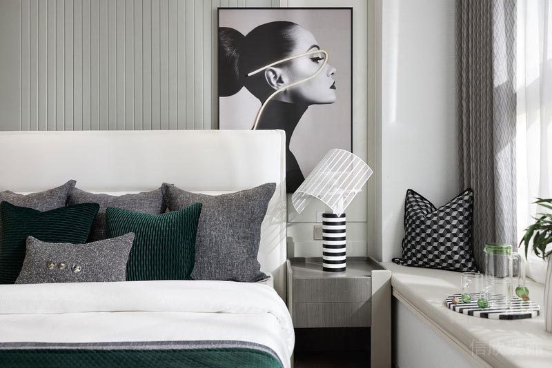 臥室的設(shè)計(jì)延續(xù)客餐廳的舒適與品質(zhì)感,摒棄一切繁復(fù)冗雜的擺設(shè),用簡潔明了的語言展現(xiàn)出生活的質(zhì)感,錯落有致的陳設(shè)細(xì)節(jié)與個性的掛畫使整個房間有一份冷靜和內(nèi)斂,打造了一個年輕時尚的都會空間。