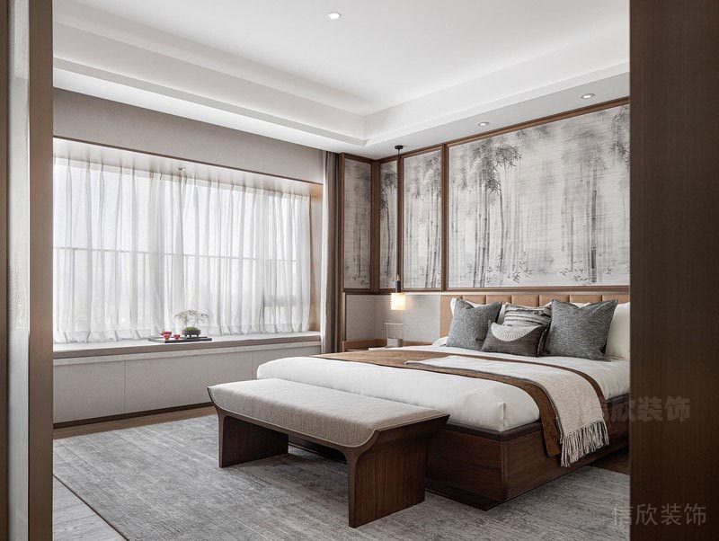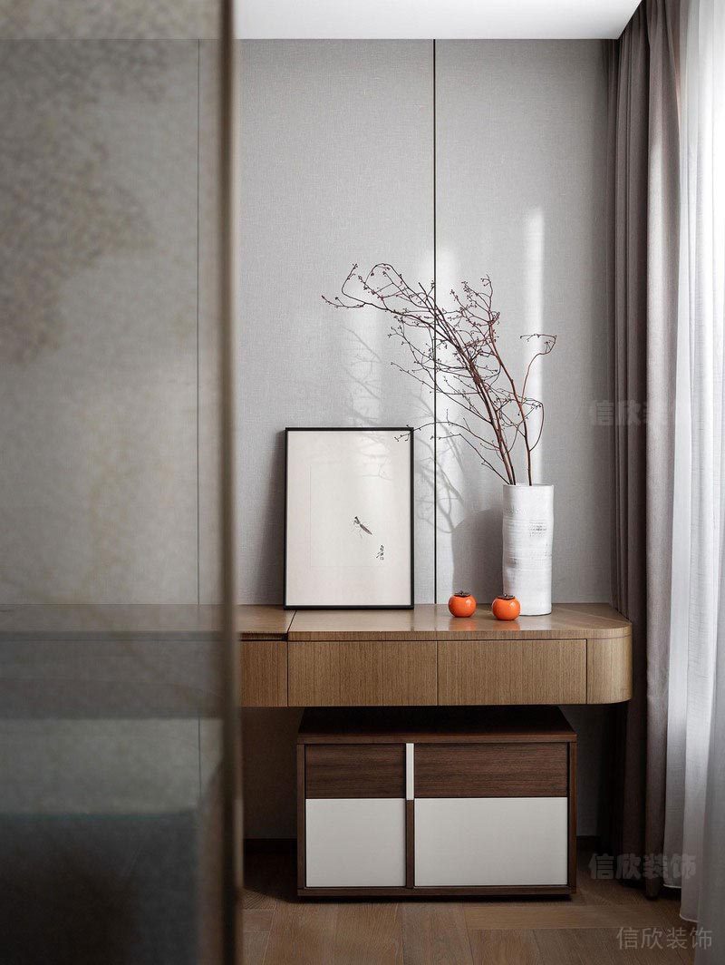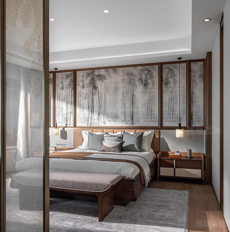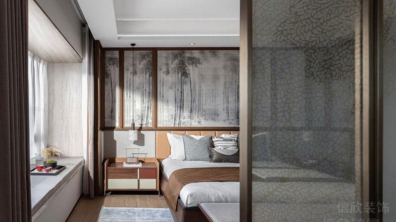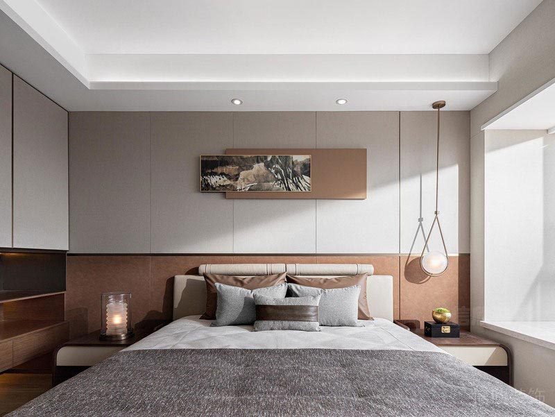 次臥的設(shè)計減少了動態(tài)線條的運用。以大量天然材質(zhì)和對稱的幾何形態(tài)構(gòu)成空間,并放大了空間的采光設(shè)計,通過軟硬裝的整體配合營造時尚而溫馨的居室樣貌,整體敞亮而舒適,營造出更多高級質(zhì)感及溫馨的居住體驗。