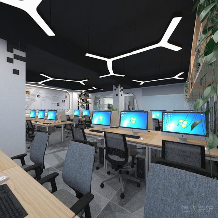 信欣南山區(qū)裝修公司設(shè)計(jì)案例,跟投網(wǎng)絡(luò)公司辦公室裝修,共有員工32人,工程位于南山區(qū)創(chuàng)維大廈,面積220平方米,共設(shè)置了獨(dú)立辦公室4間,公共辦公區(qū),工程總價(jià)8萬元。地面采用灰色暗花紋防滑地磚,暗花紋帶來的一些變化,讓空間變得靈動起來。墻面灰色乳膠漆,天花噴黑色乳 膠漆,隨意安裝的人字形吊燈和黑色的天花搭配在一起,有點(diǎn)像夜空的繁星點(diǎn)點(diǎn),讓我們的辦公室多了 些許寧靜。整個(gè)辦公空間多以灰白黑色調(diào)為主,空間會有些沉悶,所以辦公桌選用了木紋色辦公桌。
