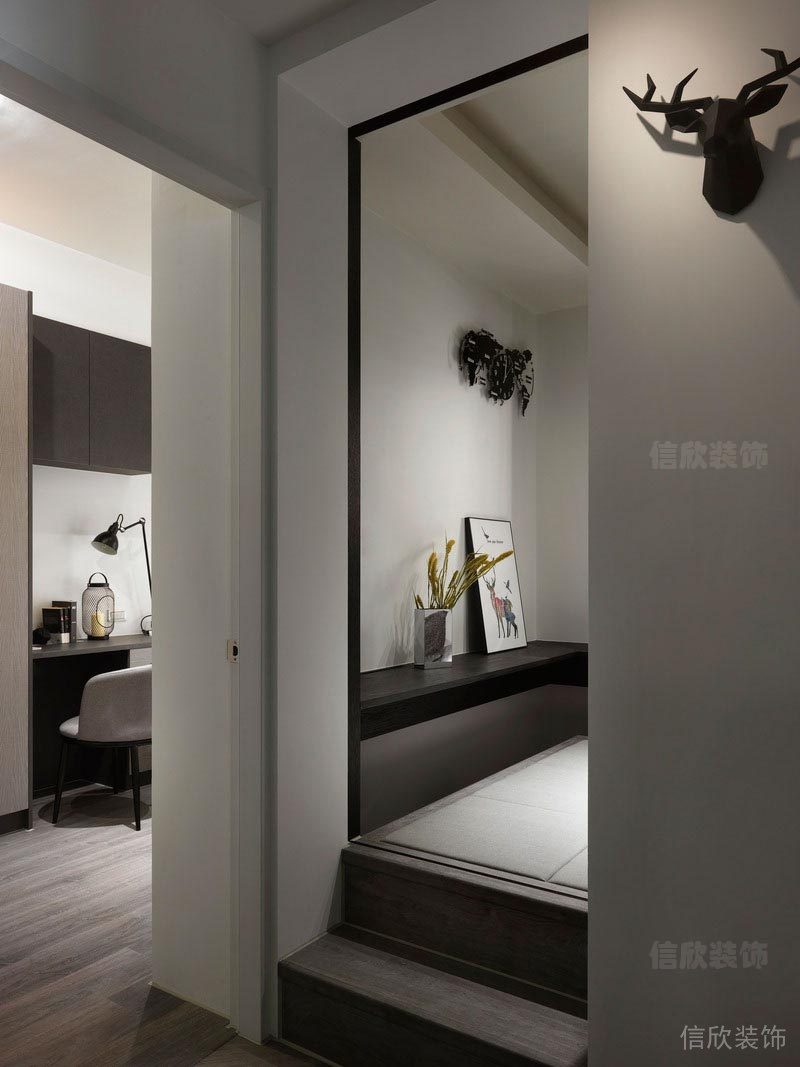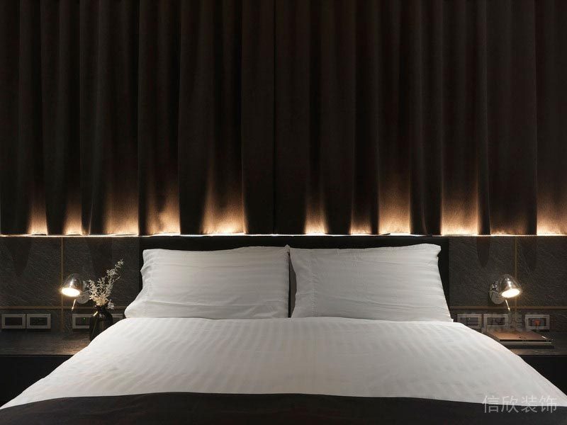 后現(xiàn)代風黑白灰的設計,不拘泥于細節(jié)和華麗的裝飾,簡潔高雅的黑色吊頂,灰黑的墻地;永不停歇的是對于精神世界的探索和高尚情操的修養(yǎng)。