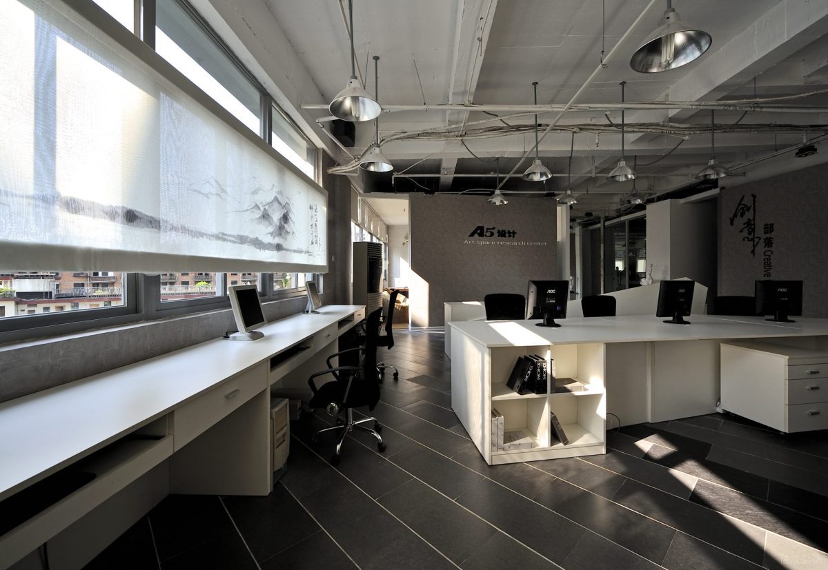 工業(yè)風(fēng)辦公室開(kāi)放式的辦公區(qū),鋼結(jié)構(gòu)的辦公桌,簡(jiǎn)潔實(shí)用,上層增加了放文件和儲(chǔ)物的空間。