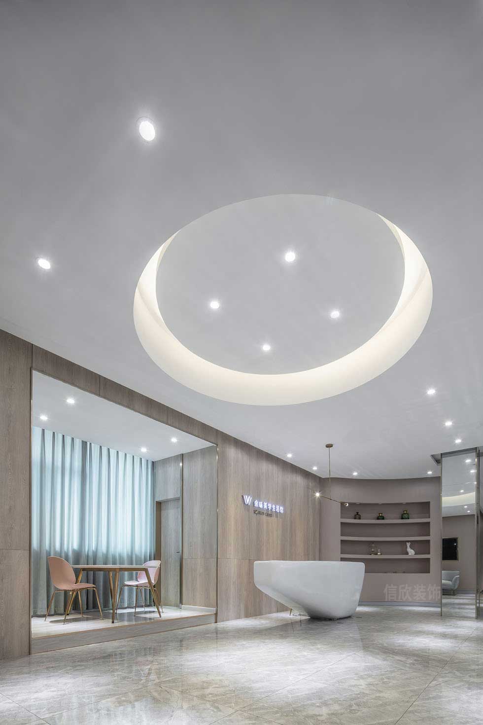 會(huì)議室采用通透的落地玻璃,讓大廳視野顯得更加開闊的同時(shí),也使整個(gè)美容空間顯得更加的專業(yè)