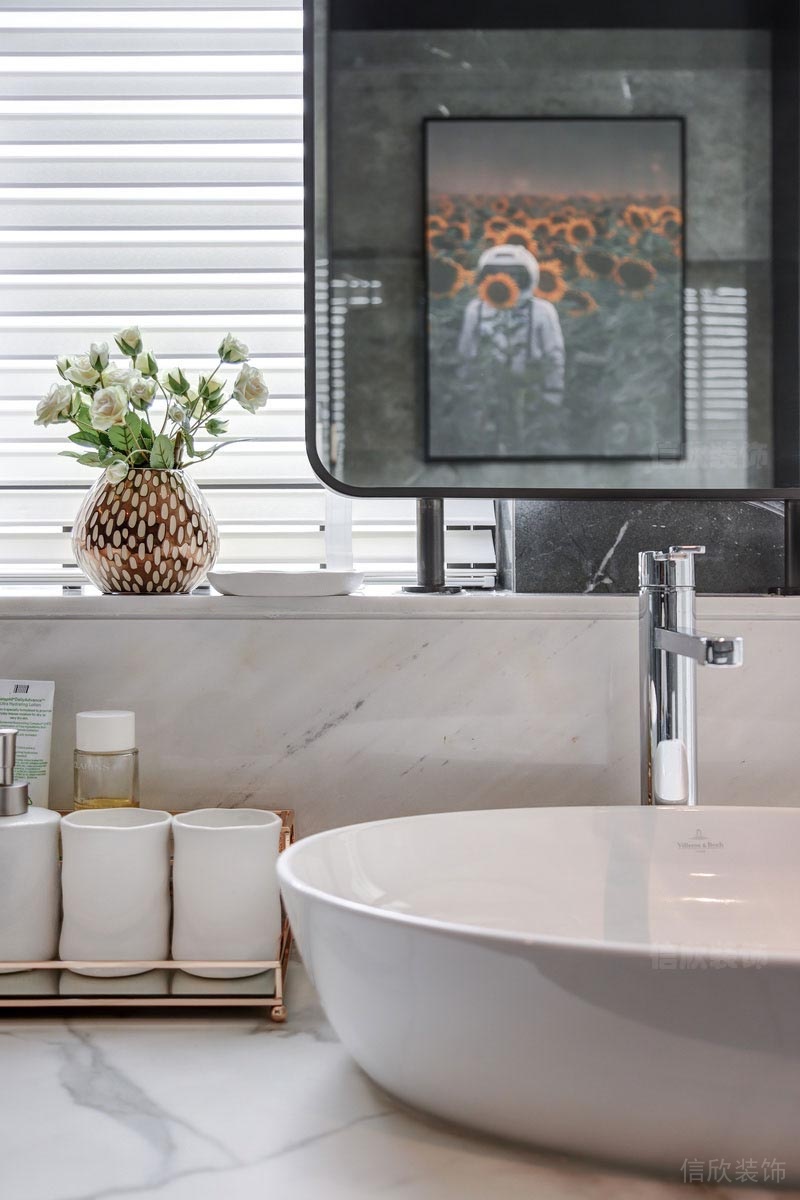 灰色和白色勾勒出的現(xiàn)代衛(wèi)生間,時(shí)尚中又不缺少奢華的色彩。
