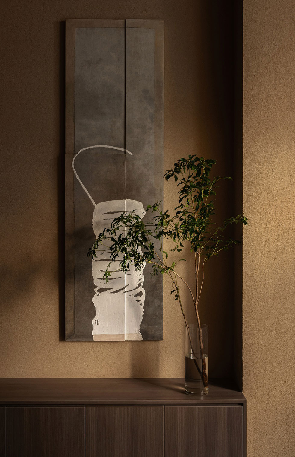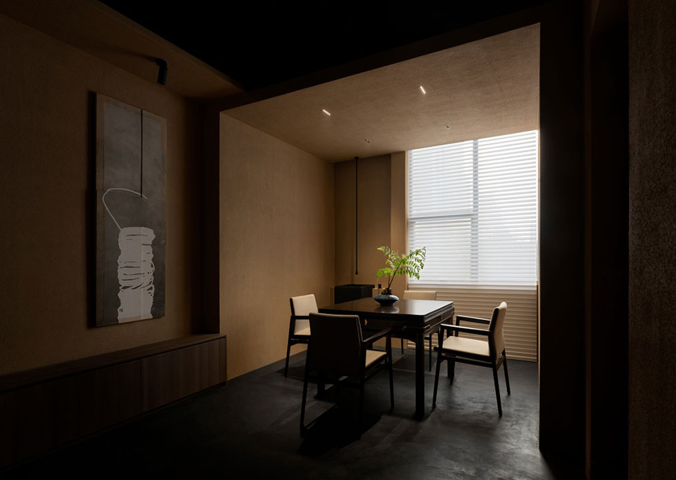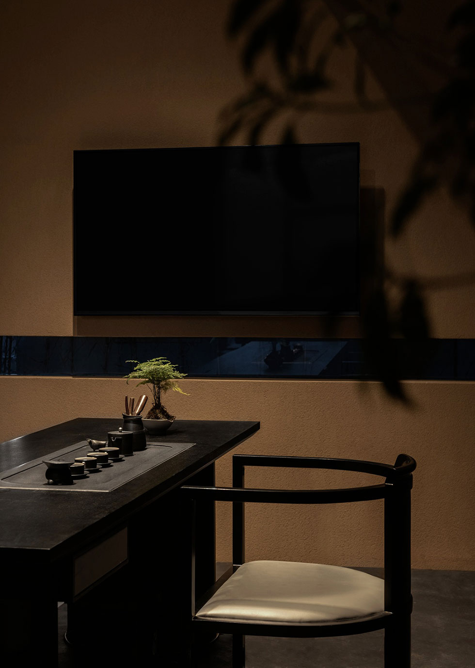 自然肌理的茶湯色溶于大面墻體,通過重點照明與黑色域的交融,營造靜謐釋壓的空間,微妙的質(zhì)感,可以自在的交心暢聊。