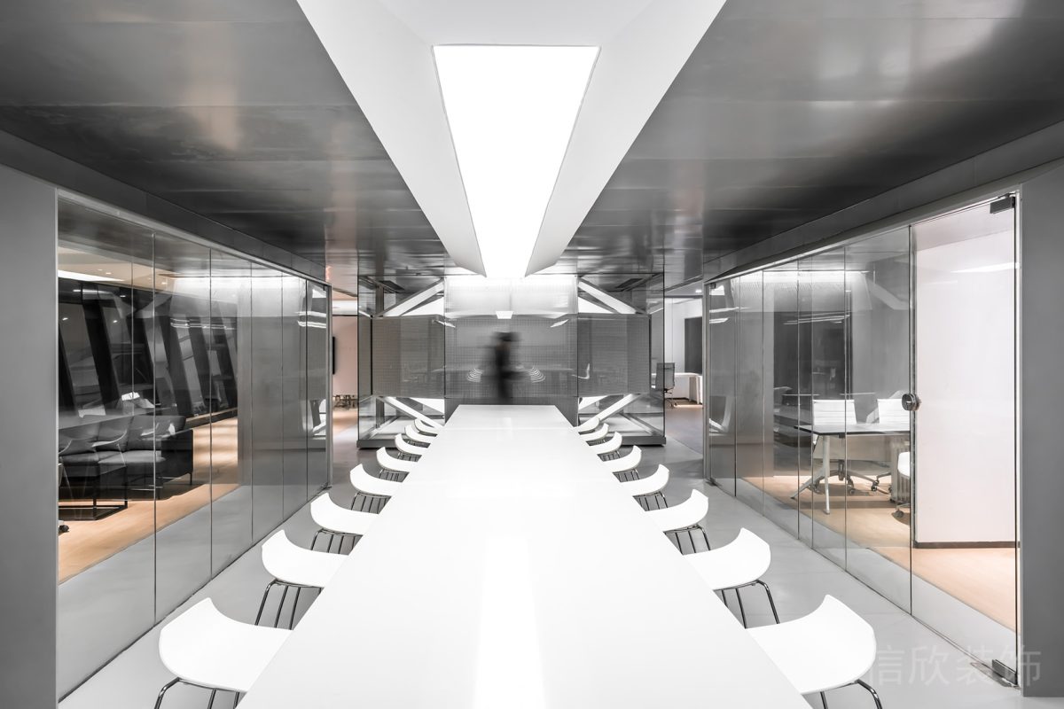 會(huì)議桌采用直線(xiàn)式長(zhǎng)桌設(shè)計(jì),搭配簡(jiǎn)單的白色椅子,以保持空間整體的協(xié)調(diào)性。