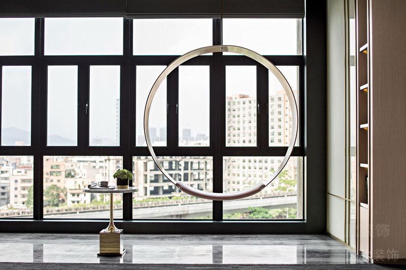 黑色和黃色的地板,把空間做了一個美觀而無違和感的分隔,抽象風的立體裝飾物,給人留下無限的遐想。