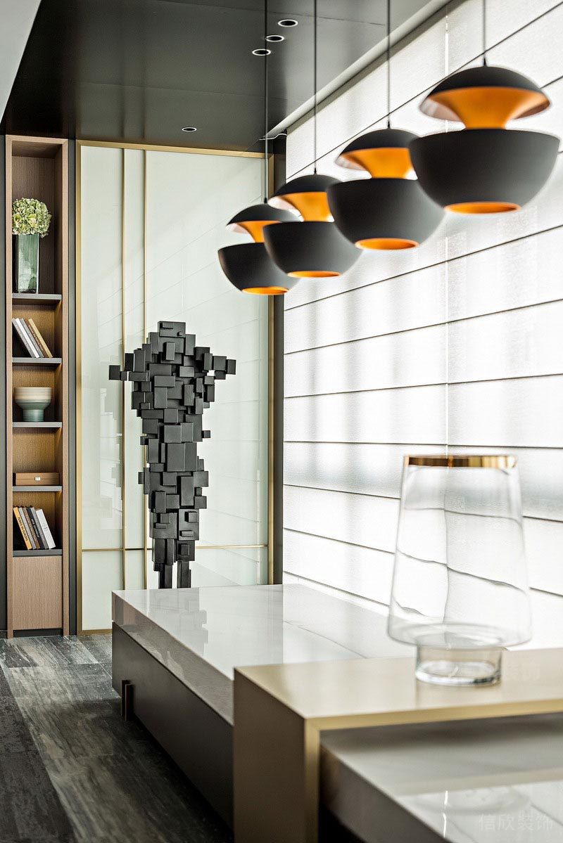 天然的黑色大理石紋,一副水晶吊燈組成的山水畫,充滿了設(shè)計感和創(chuàng)新,在燈光完全打開的情況下,就變成一顆流光溢彩,耀眼奪目的明珠。