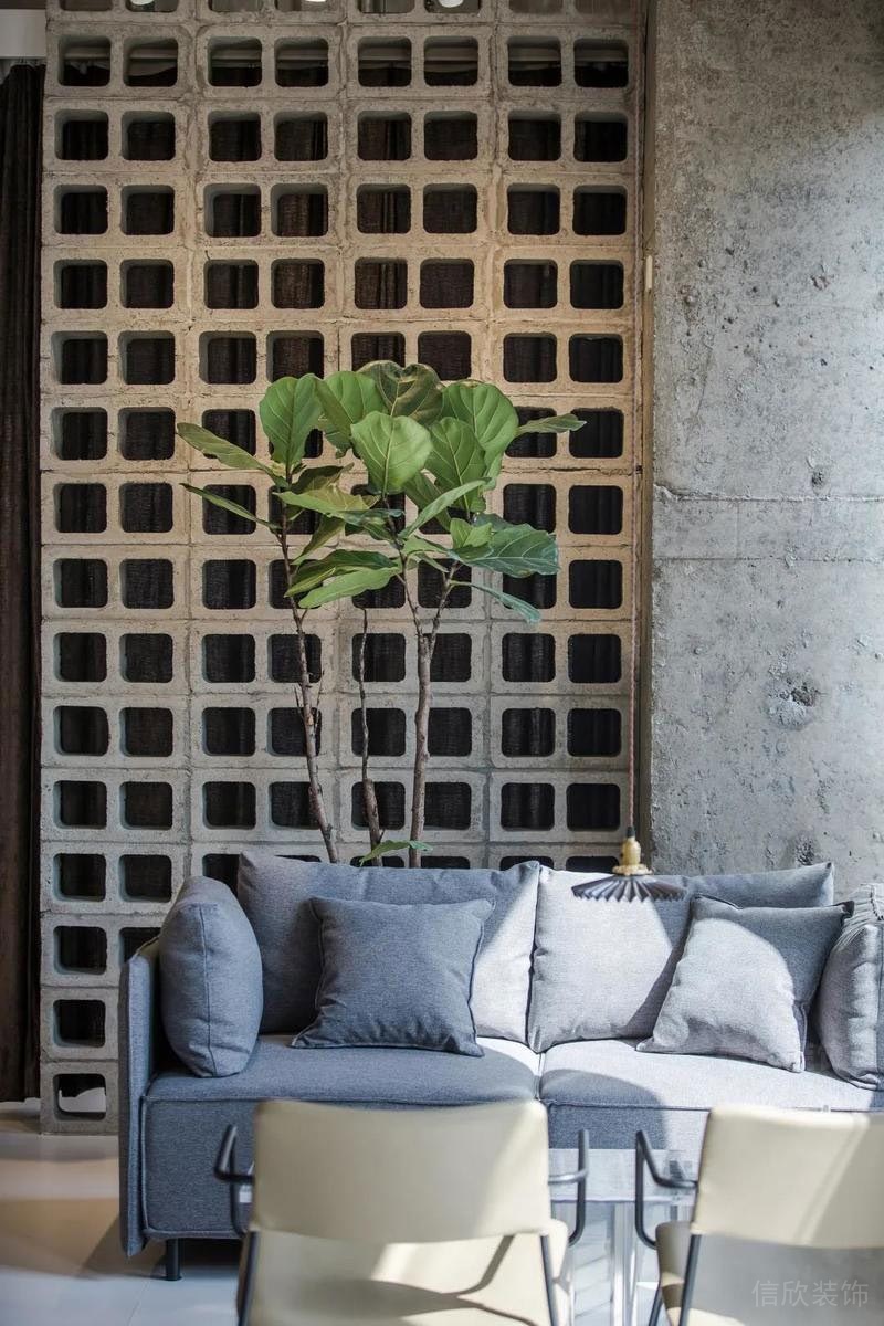 在墻面上大量使用玻璃墻,使空間的通透性強(qiáng),人們可以通過玻璃看到窗外的世界,使辦公空間與室外自然環(huán)境在一定程度上達(dá)到相互融合。同時(shí),室內(nèi)植物在陽光的照射下形成自然的光影,對辦公空間有一定裝飾性。