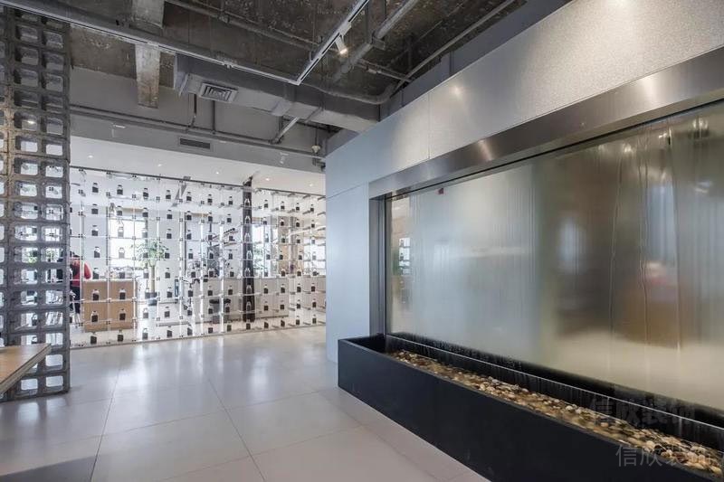 半透性的玻璃隔斷,設(shè)計(jì)出冰裂紋的效果,鵝暖石的觀景臺(tái),營造出瀑布一樣的美觀感。