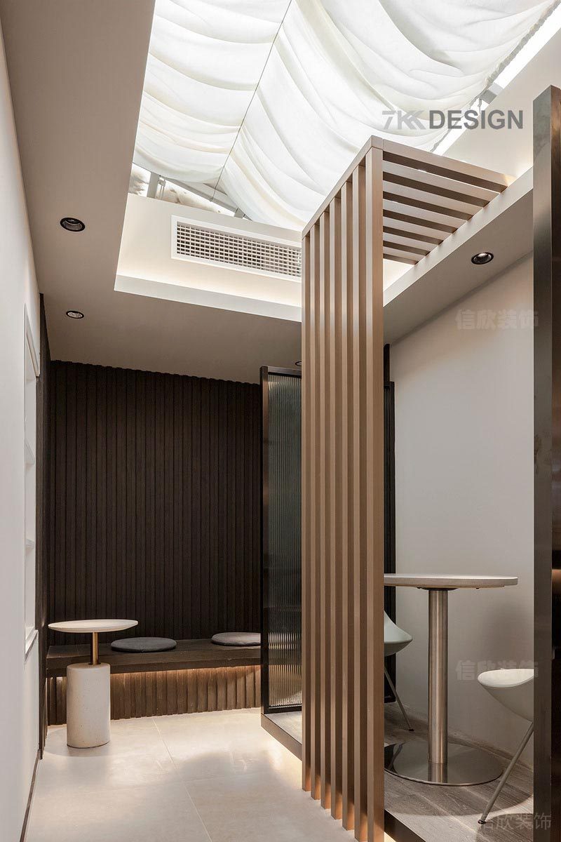 以不同隔斷劃分區(qū)域間隔,軟裝搭配的桌椅擺放也別有心思。