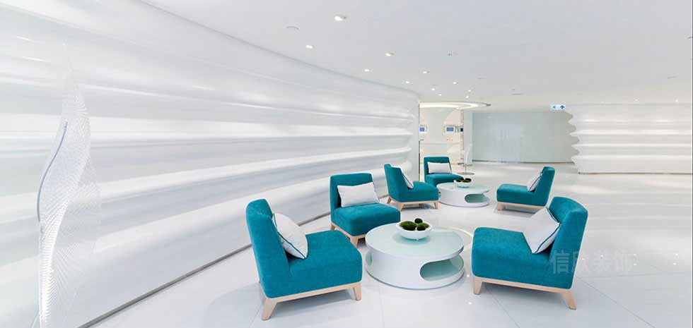 前臺(tái)的設(shè)計(jì),采用和大廳一體的純白色設(shè)計(jì),弧形形的前臺(tái)和頂面一體,看起來(lái)統(tǒng)一性和連貫性強(qiáng),用最簡(jiǎn)單的設(shè)計(jì)方式給人一種純潔干凈,不帶一絲人間煙火之氣的優(yōu)雅質(zhì)感,仿佛走進(jìn)童話(huà)世界。
