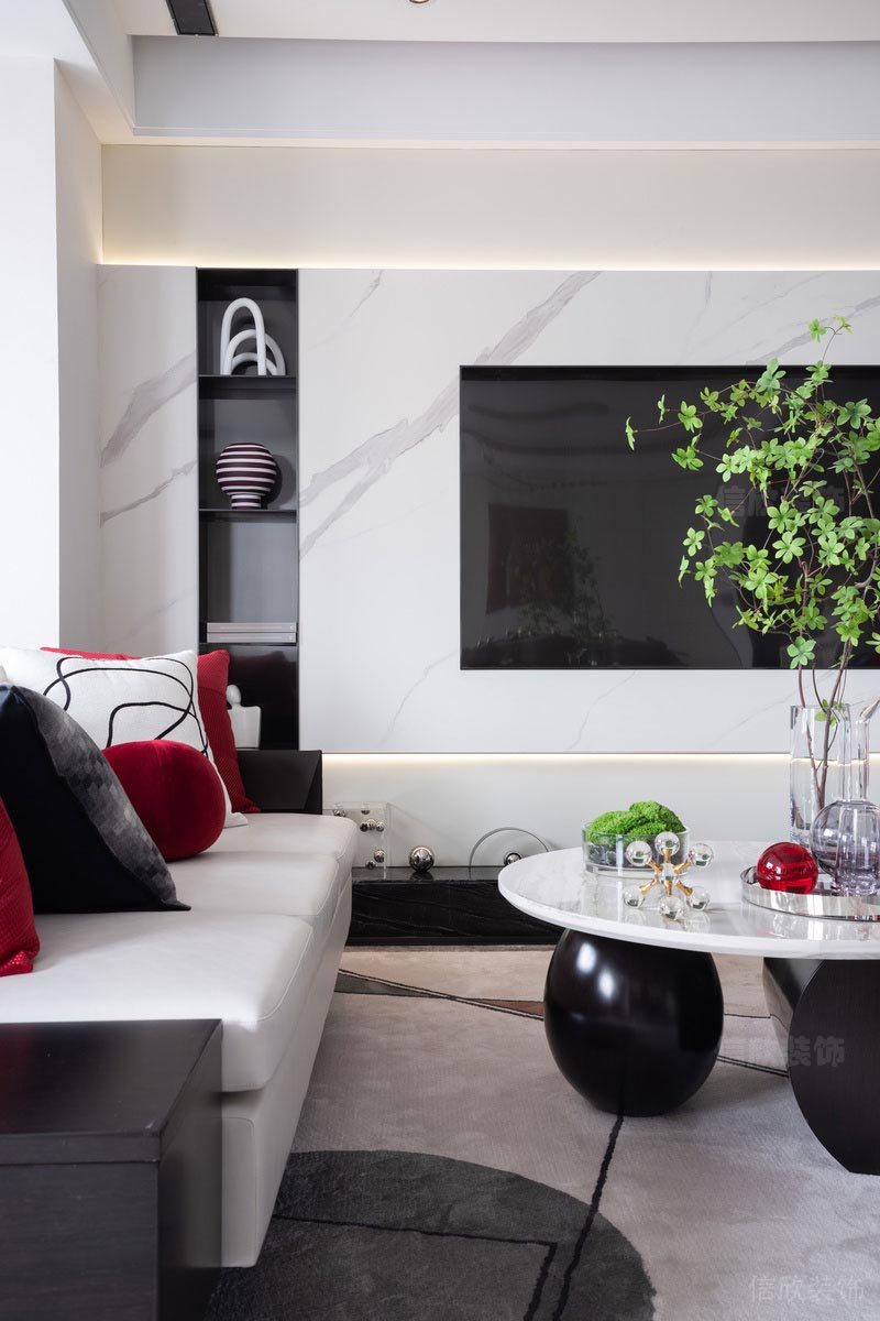 白色石紋背景墻,黑白色調(diào)的沙發(fā),簡潔而不平凡的氣質(zhì),盡顯奢華的格調(diào)。