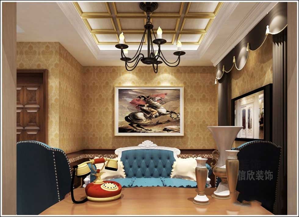 展廳的設(shè)計以歐式風(fēng)格為主,通過小方格的頂面,分開兩個洽談區(qū),方便分開談判的同時,也顯得更加精致,在歐式油畫和洛可可風(fēng)格的家具中,體驗細膩而浪漫的歐式情調(diào)。中間壁爐式的小隔間為主體,體現(xiàn)出傳統(tǒng)歐式文化的理念傳承。