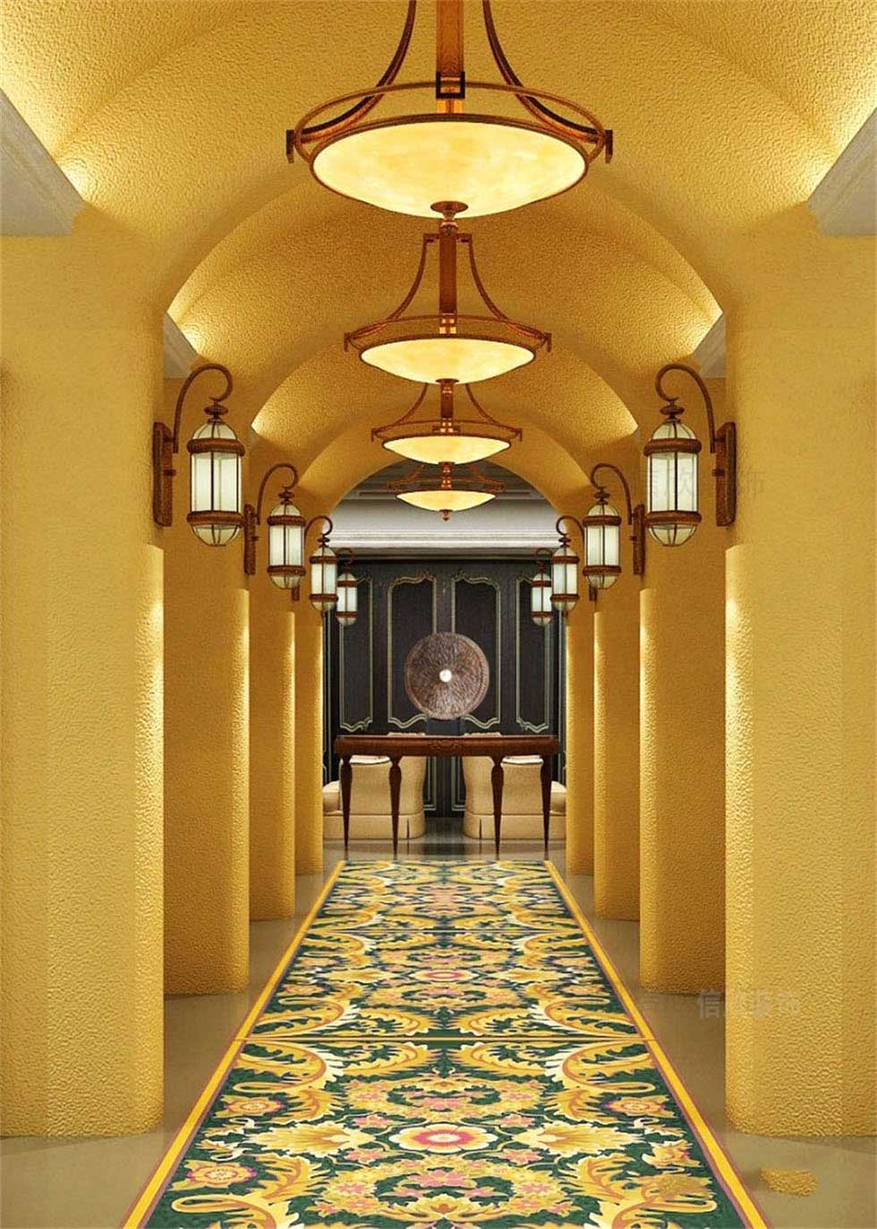 一道道拱形的小門,砂礫感涂料制成的墻面,在吊燈和壁燈的裝點下,顯得非常有漫步在歐洲古典城堡中,獨特的復(fù)古韻味和內(nèi)涵。