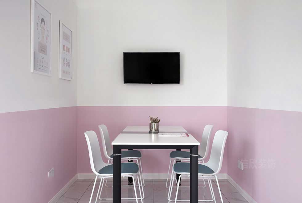 粉紅色和白色的小會(huì)議室,用色彩對(duì)比的方式,去除了狹窄,昏暗的缺點(diǎn),取而代之的是用粉色調(diào)裝點(diǎn)每一個(gè)女孩子心里的公主夢(mèng),讓整體看上去顯得溫馨和童話。