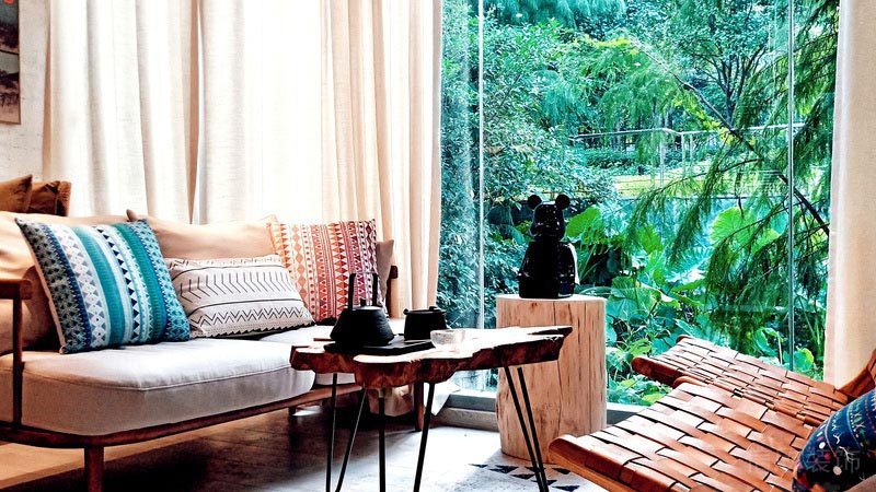天然木藝的茶幾,藤編的椅子,文藝的氣息濃厚,冬暖夏涼,適合靜靜的閱讀和思考。