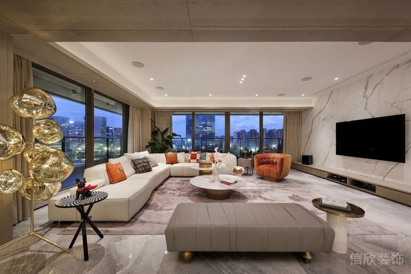 夜景下的客廳,富麗堂皇,莊嚴大氣,如一首動人的交響曲般,豪華動聽。