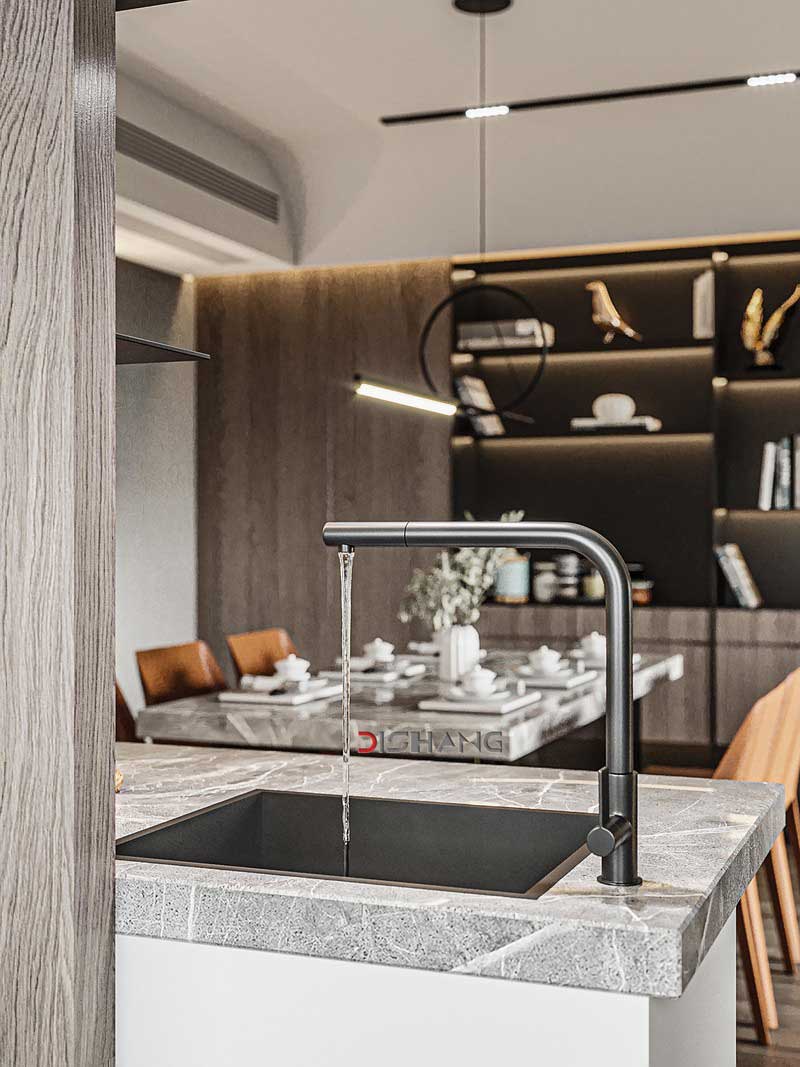 現(xiàn)代美學(xué)與臺(tái)式風(fēng)格的相遇,沒有紛繁復(fù)雜的裝飾、用質(zhì)樸的色彩和材質(zhì)線條的搭配,將設(shè)計(jì)美學(xué)轉(zhuǎn)化為家的精致細(xì)節(jié)。