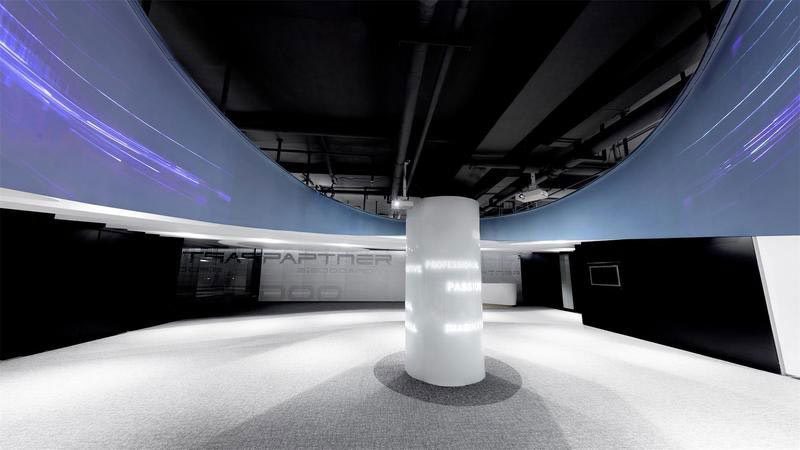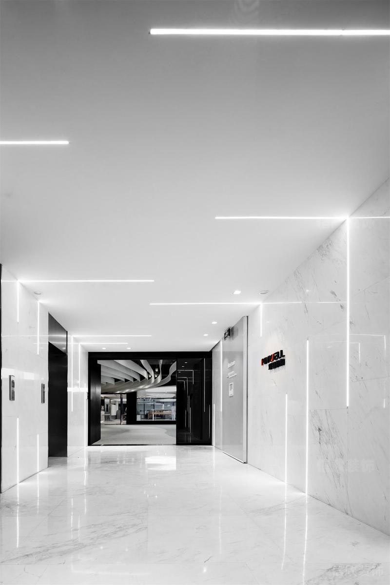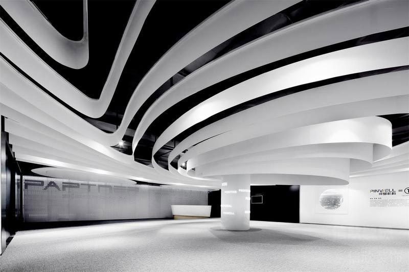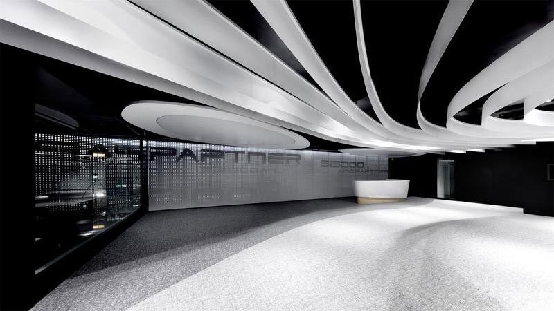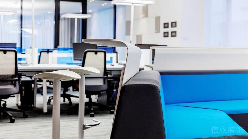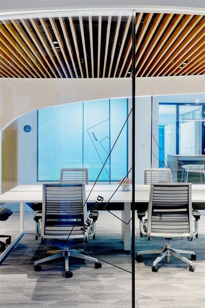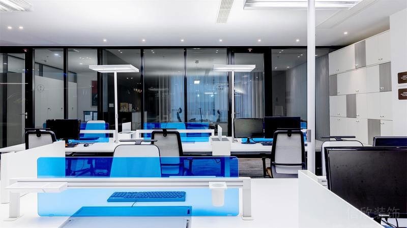 白色的簡約和高冷,開放式的辦公空間,消除了同事之間的隔閡,增多了彼此間的交流和合作,藍色的加入,提升了整體的科技感和未來感,讓整個空間立馬活躍起來。