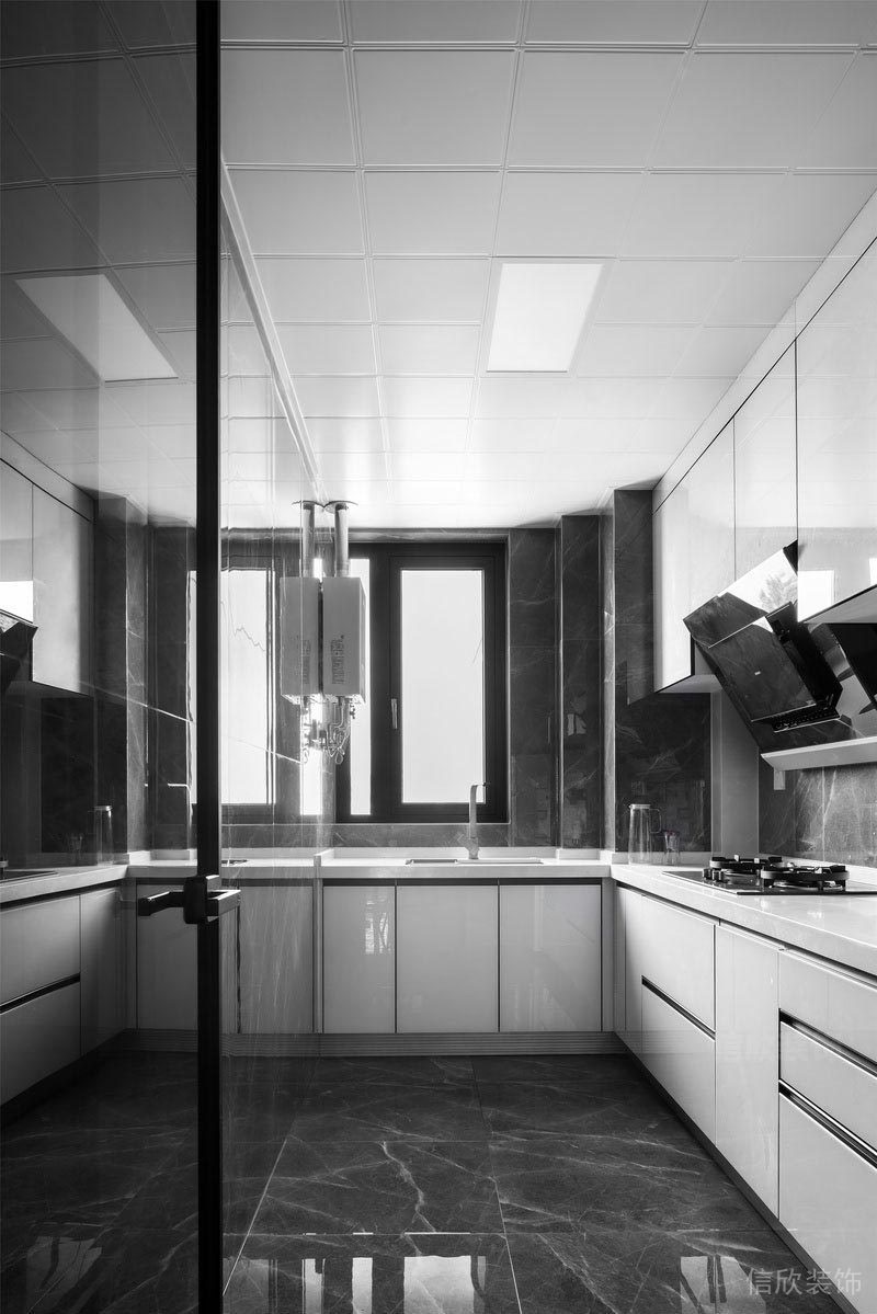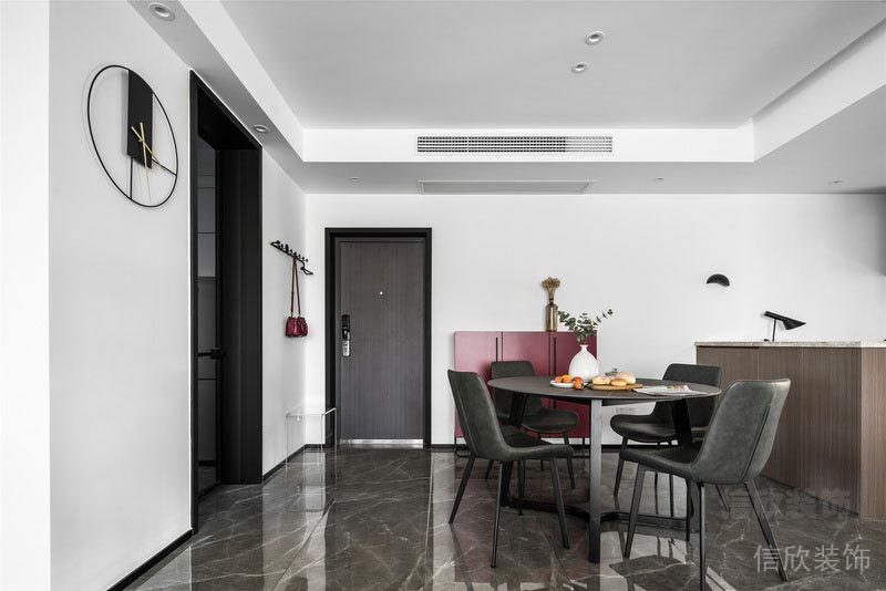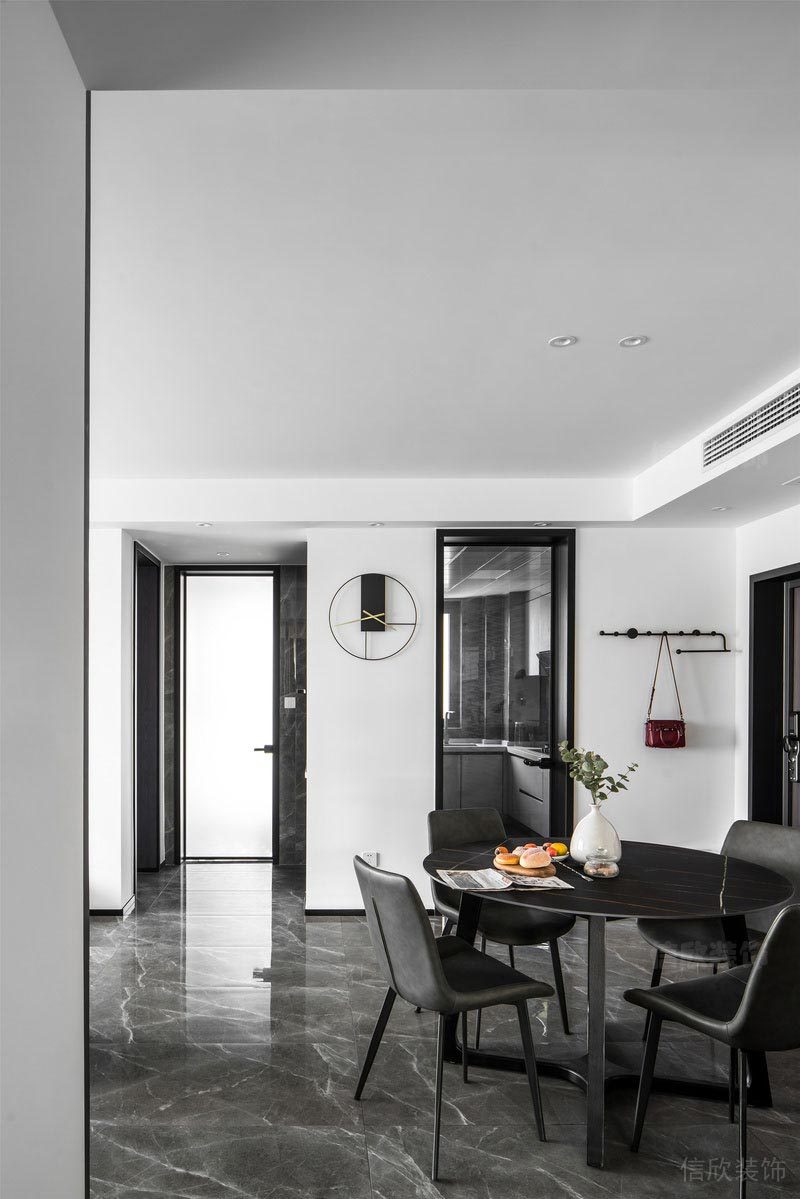 餐廳整體延續(xù)中性基調(diào)的現(xiàn)代風(fēng)格, 營(yíng)造沉穩(wěn)與淡定的空間氛圍。 簡(jiǎn)約的布局賦予空間自由無(wú)拘的舒適感受。 廚房以通體的黑色貫穿空間, 靜謐的窗,撒一束微光,便是無(wú)盡的溫柔。