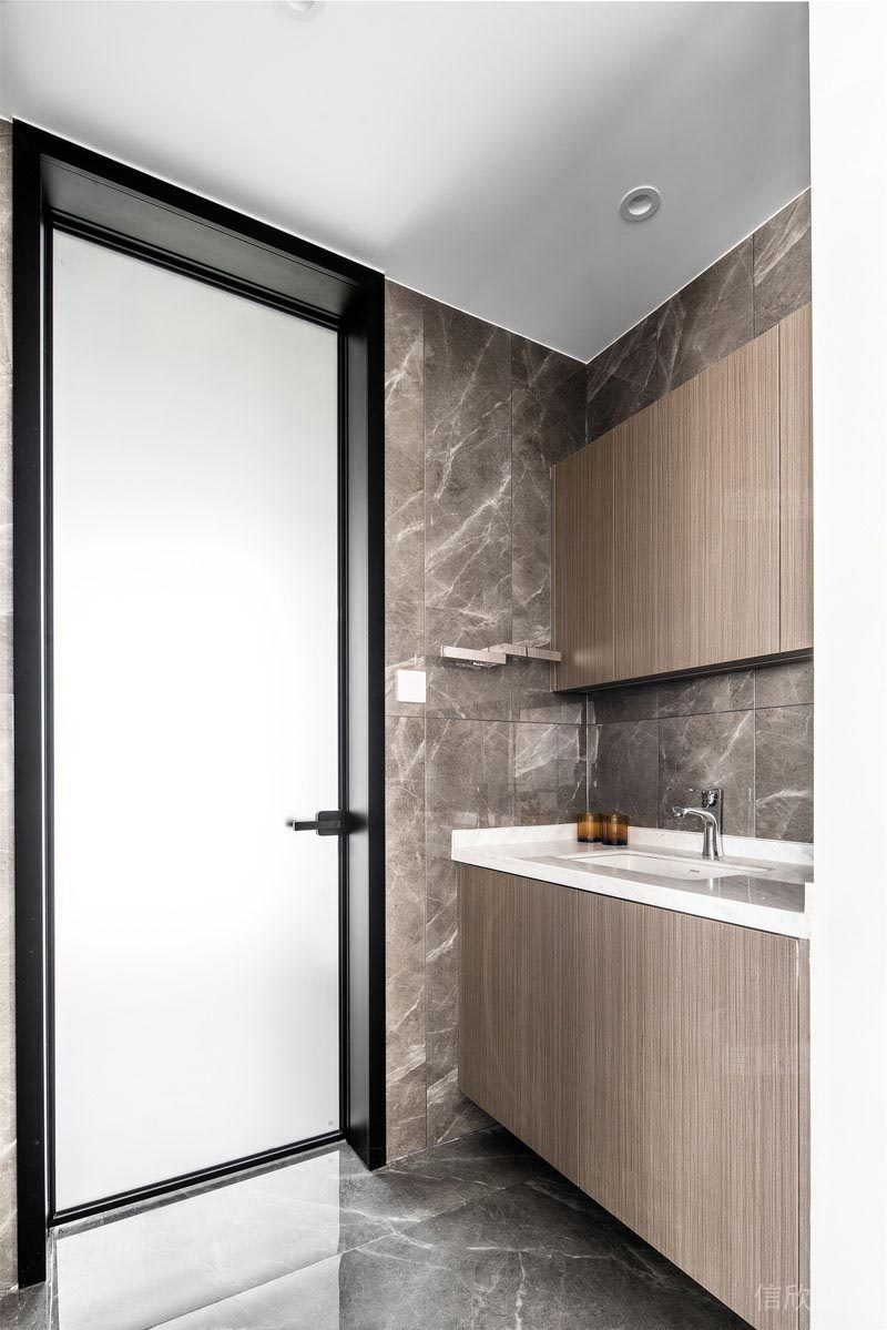 衛(wèi)生間干濕分離,再補(bǔ)充一個(gè)小便斗,便于家中男生使用,淋浴房?jī)?nèi)做個(gè)三個(gè)壁龕。增加衛(wèi)生間的收納功能,馬桶后毛巾架可以烘干一些濕毛巾,更健康。墻地磚地磚上墻,并且豎貼,使得空間感更強(qiáng)。