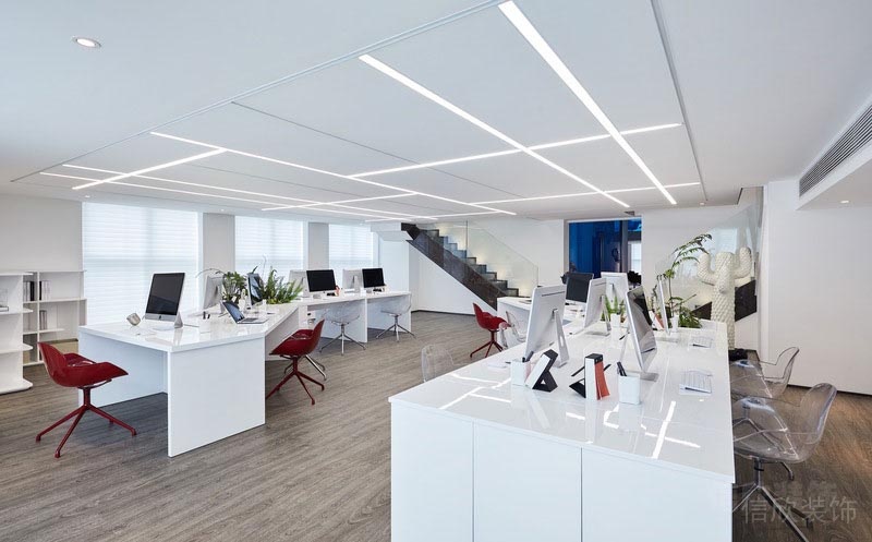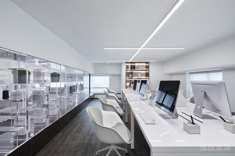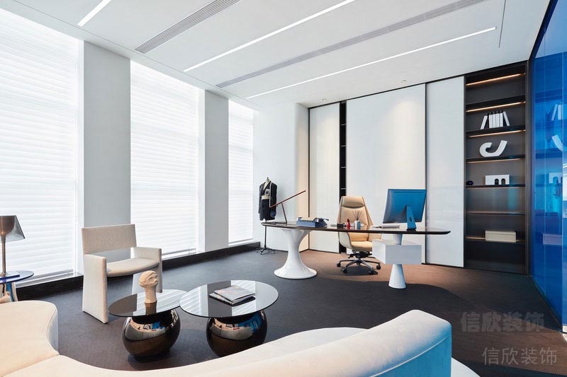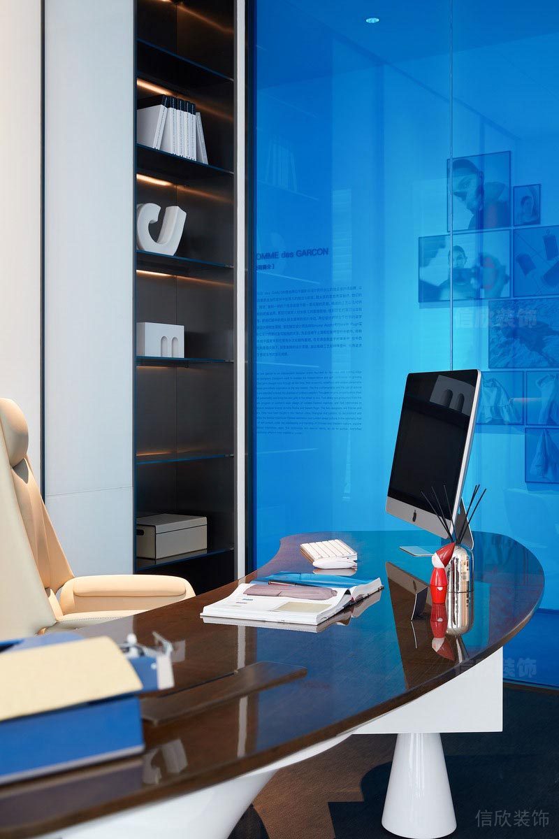 工作區(qū)通道演繹潮流前線,極富創(chuàng)意的時尚大片與藍色所代表的潮流色彩席卷而來,創(chuàng)造出充滿趣味的互動區(qū)域。內(nèi)部私密的工作空間反之呈現(xiàn)出舒適且的氛圍。