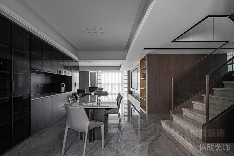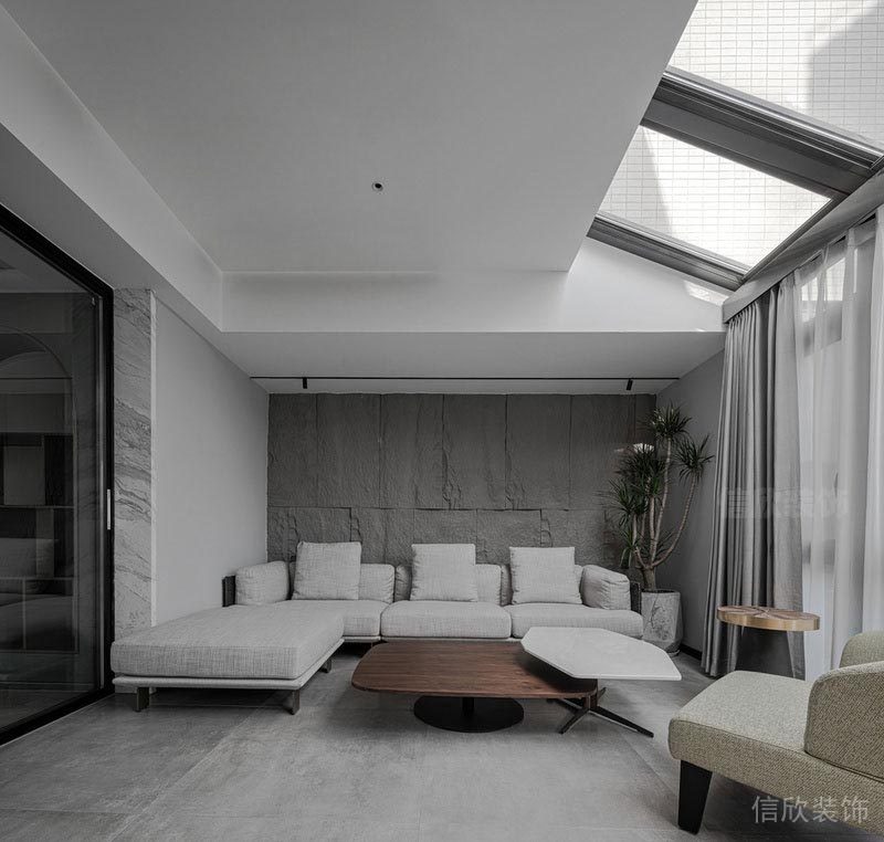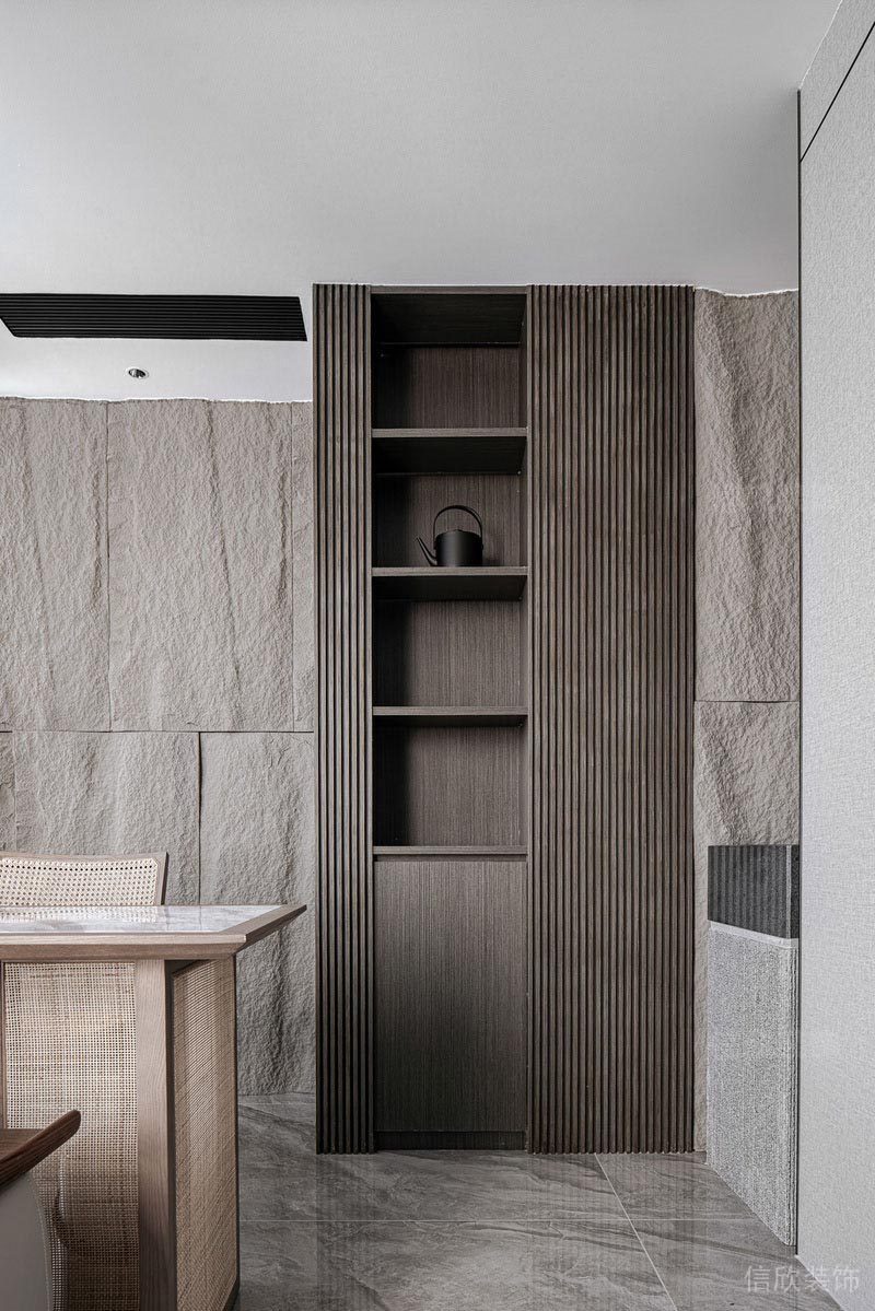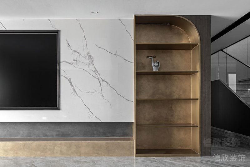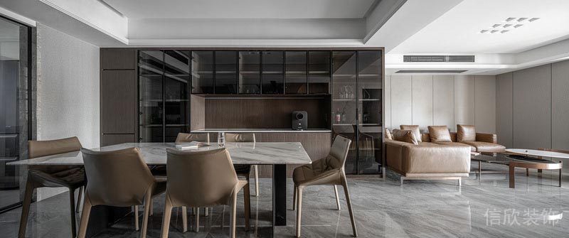 清水洞石背景墻和置物柜,元實木的茶桌,貼近自然和生活,滿滿的北歐風(fēng)情式 的浪漫。