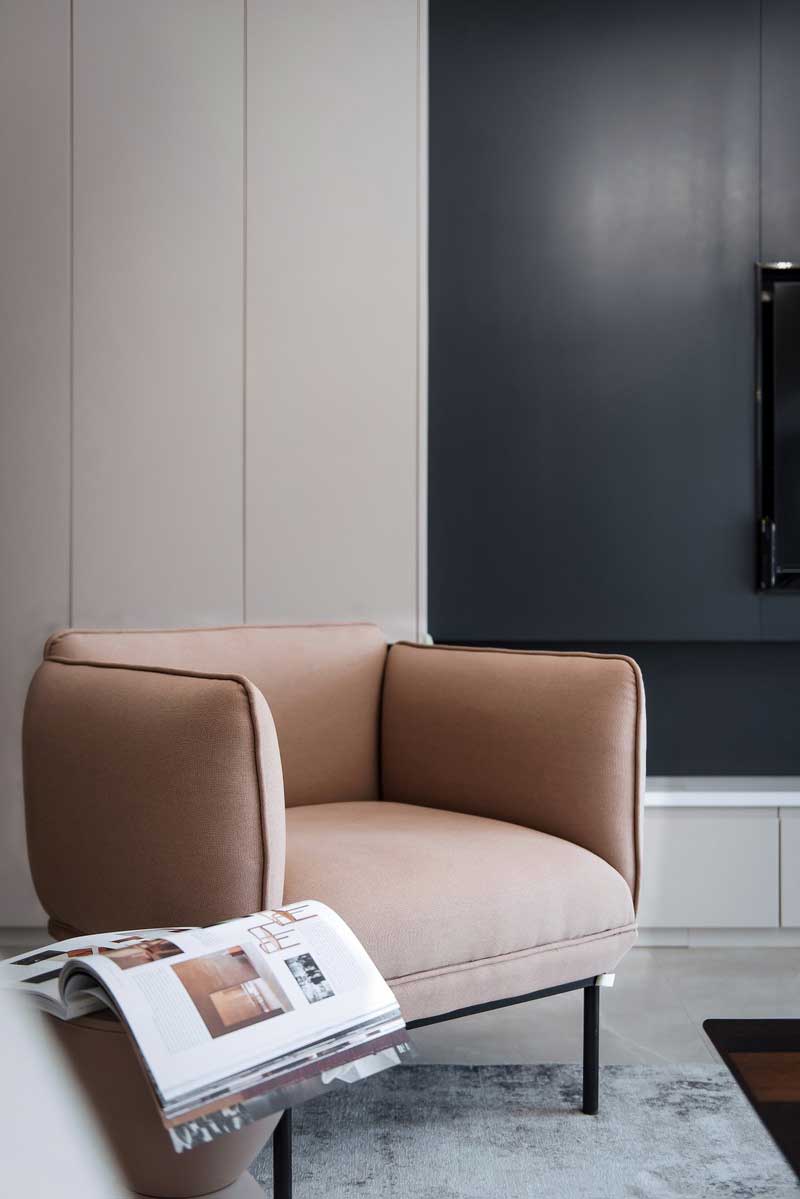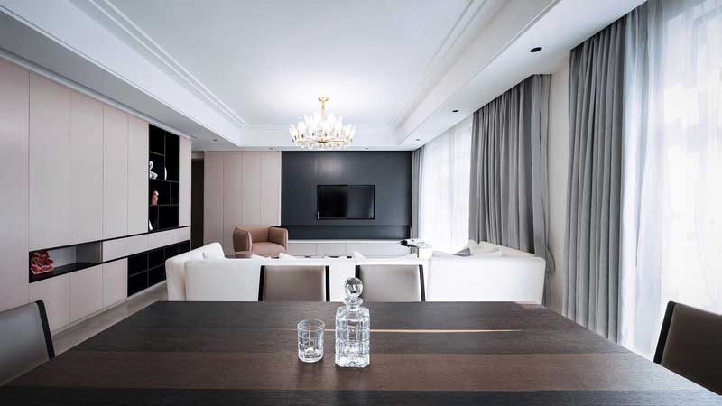客餐廳經(jīng)過(guò)調(diào)整空間的比重,得到更為開(kāi)闊的公共空間以及更自由的活動(dòng)軌跡,整個(gè)空間重構(gòu)比例,利用材質(zhì)的特性以及調(diào)整整體細(xì)節(jié)后,將入戶玄關(guān)、客餐廳以及廚房原有四大塊略顯局促的獨(dú)立盒子化整為零。