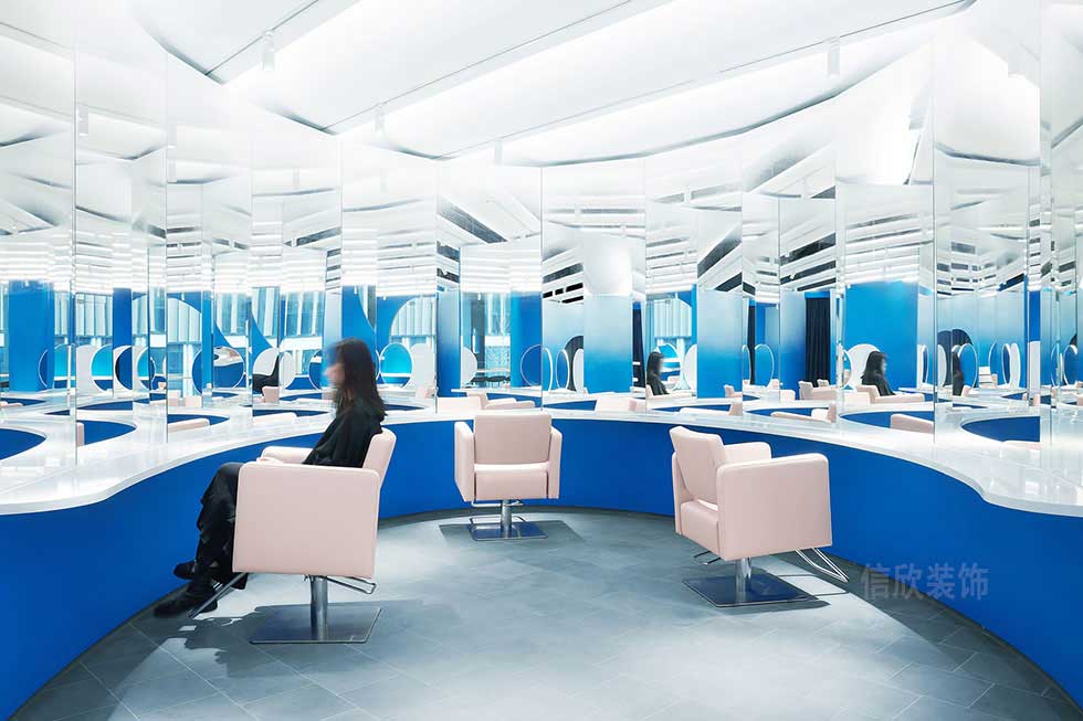 深圳福田藍(lán)色的美容美發(fā)店大廳裝修