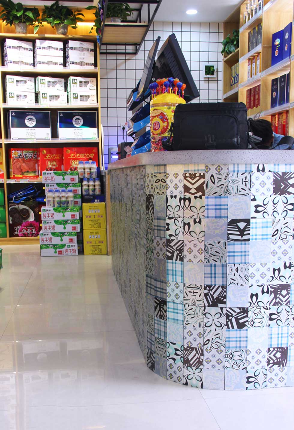 水果店大廳的設(shè)計,以簡約的風(fēng)格,灰色系的地面和原木風(fēng)的家具搭配,塑造出暖系風(fēng)的感覺,在光影的折射下,注重細(xì)節(jié)的展示,原木紋理的家具,給人一種綠色自然的韻味。