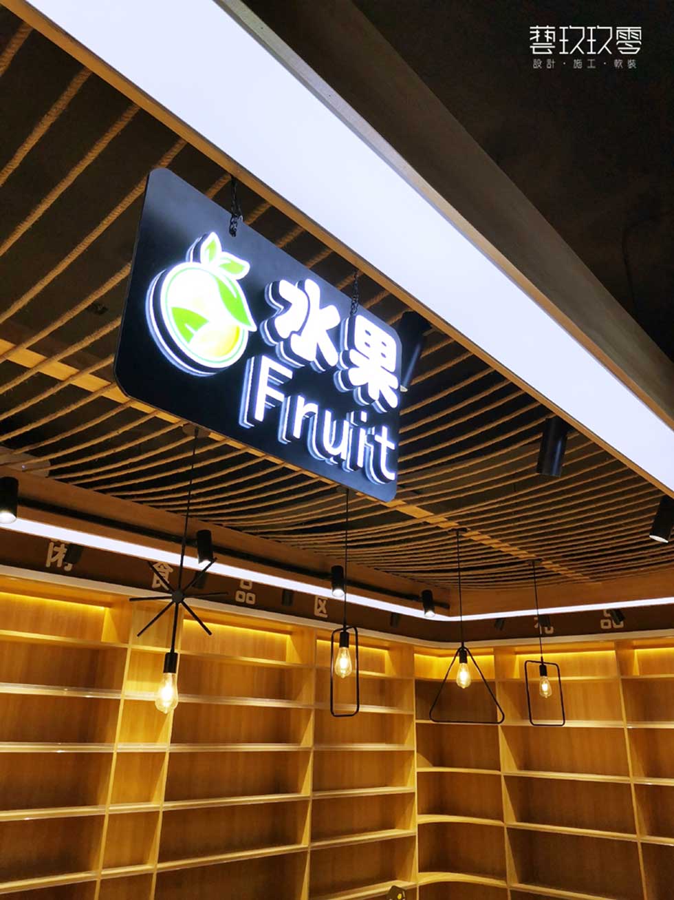 水果店頂面的裝修,保留了原始的結(jié)構(gòu),用噴黑的處理方式,入戶利用燈眉降低了層高,給人感覺藝術(shù)飽滿而不顯得空曠,麻繩組成的格柵頂面,新穎大膽,充滿手工藝術(shù)的氣閥。