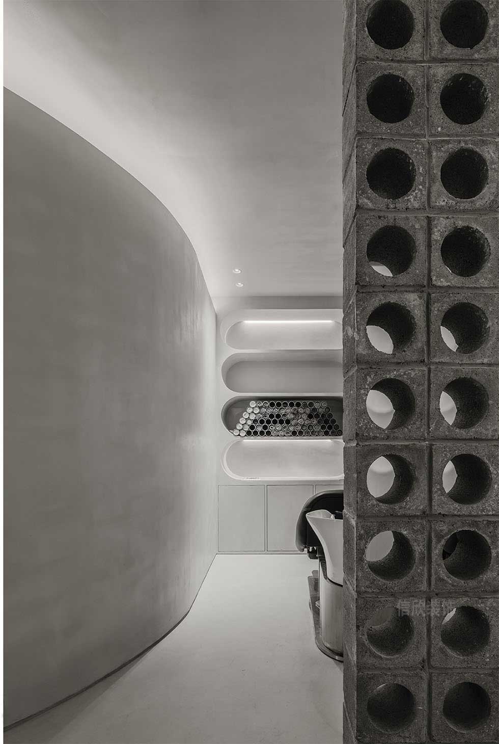 通過對(duì)“形”與“色”的對(duì)比、交疊、碰撞、拼接、組合,找到了微妙的平衡感,也賦予了空間無窮的可能性。設(shè)計(jì)將細(xì)膩的水流與光影變化納入其中,分隔精細(xì)的收納架讓美發(fā)、護(hù)發(fā)的產(chǎn)品有了便捷清晰的收納,同時(shí)裝點(diǎn)了空間。