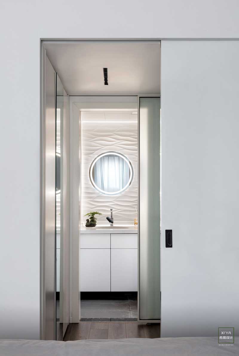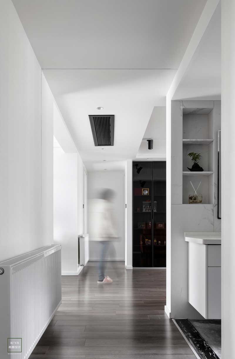 過(guò)道的設(shè)計(jì),無(wú)頂式無(wú)多余裝飾的墻頂,用纖細(xì)的光影燈條,來(lái)詮釋一種光影靈動(dòng),線條活躍,直擊人心的動(dòng)心,和立體韻味,賦予了整條過(guò)道一種全新的生命力。