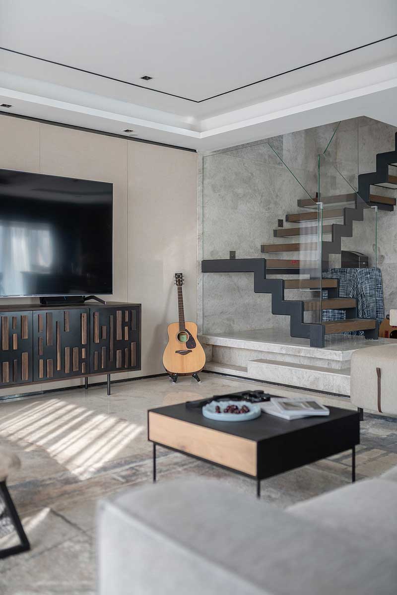 淺色原木的樓梯,搭配鋼化玻璃的扶手,非常有時(shí)尚和流行之感,在樓梯下面裝上燈條,原木紋理在光影照射下更為凸出,溫暖舒適把家的溫馨感和歸屬感,在此刻完美的顯現(xiàn)出來(lái)。