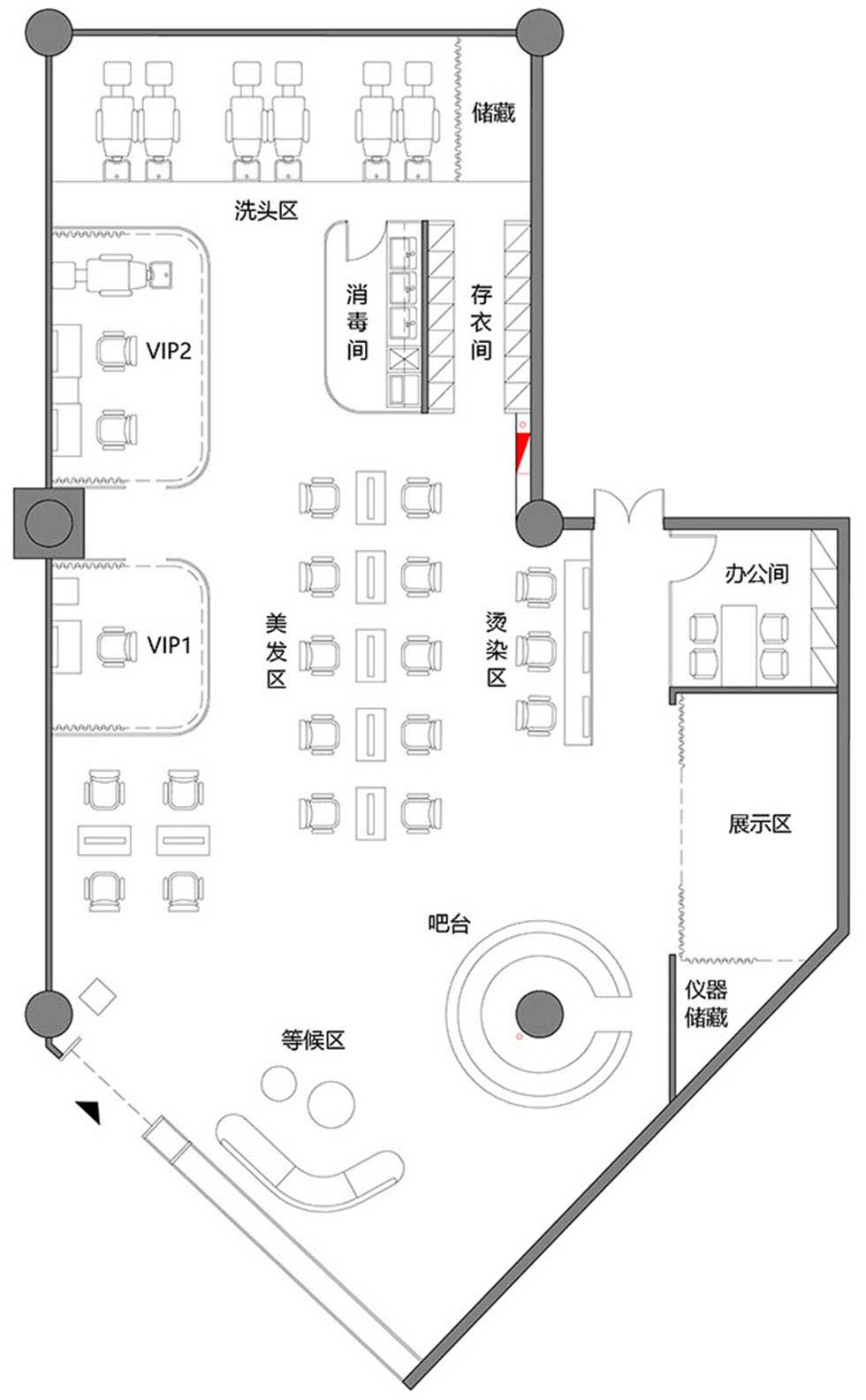 深圳羅湖400平方美發(fā)店裝修接待區(qū)施工案例
