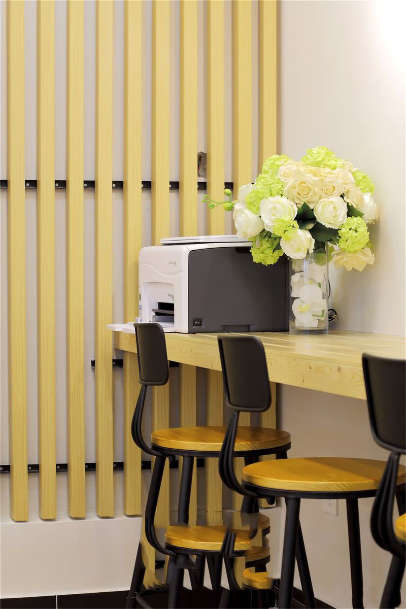 水果店鋪大廳的裝修設計,采取暖系風格的現代簡約設計理念,以暖黃色調為主題,加上淺色木地板,淺色格柵頂的元素,光影的折射下,高端大氣有格調,更具有直擊人心的暖意。