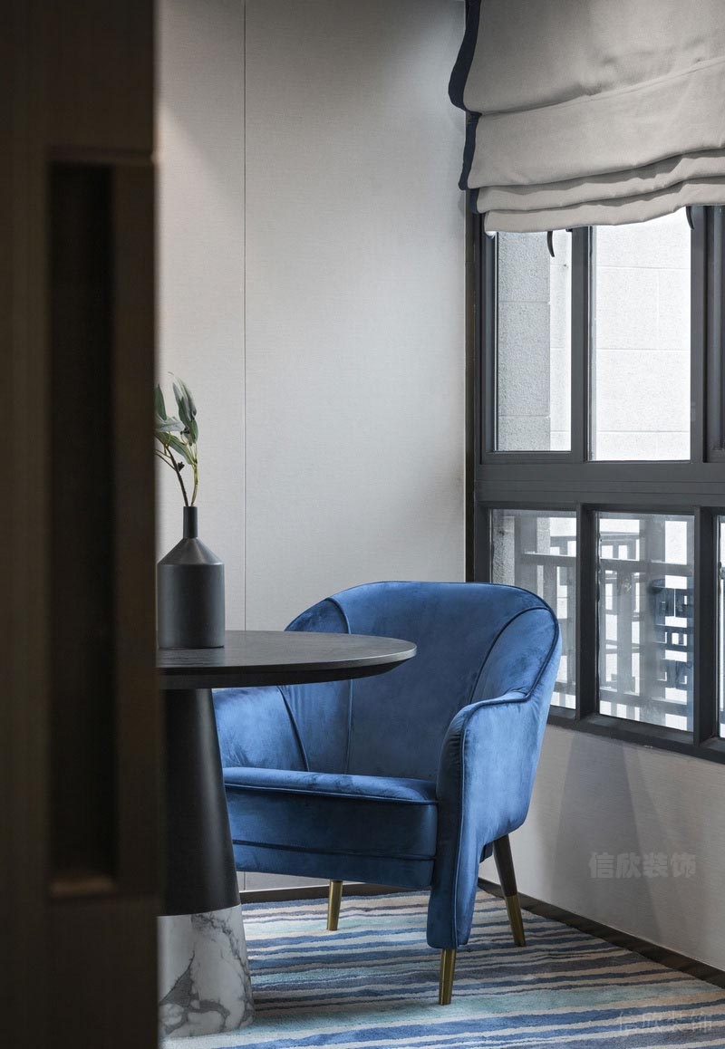 深圳市南山區(qū)星都·梅沙天邸休閑區(qū) 黑白的茶幾,貴族的湛藍的軟硬,抽象畫的線條結(jié)構(gòu),在視覺上舍棄張揚,通過對線條與色塊的巧妙應(yīng)用,營造出輕松的空間氛圍,傳遞“輕奢華、新時尚”的生活理念。