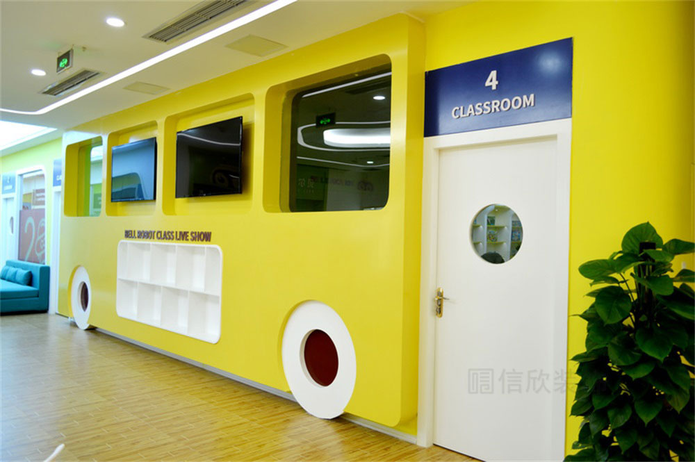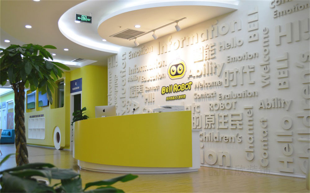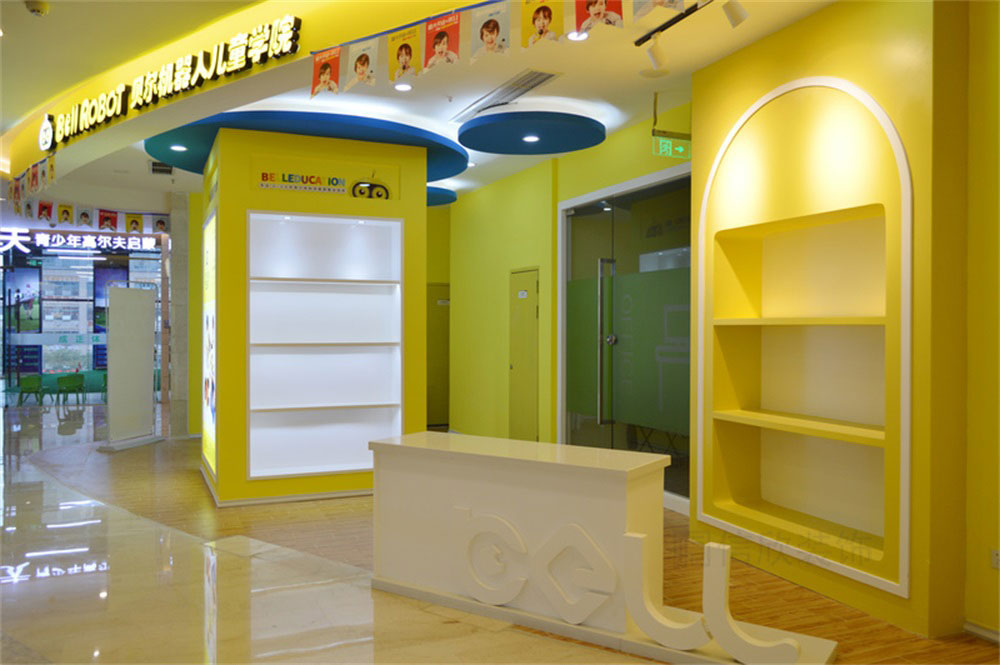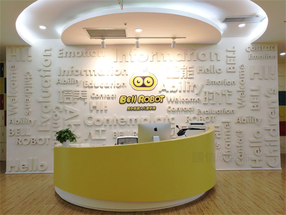 前臺(tái)的設(shè)計(jì),以白色和黃色為主題,科技感十足的圓形造型,美觀大方,特點(diǎn)十足,讓每一個(gè)來到這里的小孩,都會(huì)被深深的吸引。