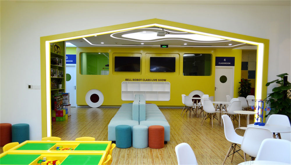 本案位于深圳市寶安區(qū)松崗貝爾機(jī)器人兒童學(xué)院培訓(xùn)機(jī)構(gòu),是一所現(xiàn)代科技風(fēng)的兒童學(xué)院裝修設(shè)計(jì)案例,針對(duì)兒童的教育培訓(xùn)的裝修,在裝修時(shí)應(yīng)多選擇簡(jiǎn)潔大氣的簡(jiǎn)約裝修風(fēng)格,避開夸張視覺的另類風(fēng)格,營(yíng)造一個(gè)輕松明快的良好學(xué)習(xí)玩耍環(huán)境。風(fēng)格、色彩、照明、裝飾等都要進(jìn)行合理的裝修設(shè)計(jì)。