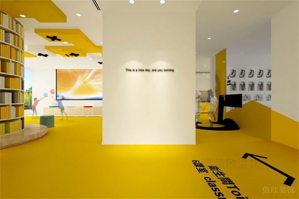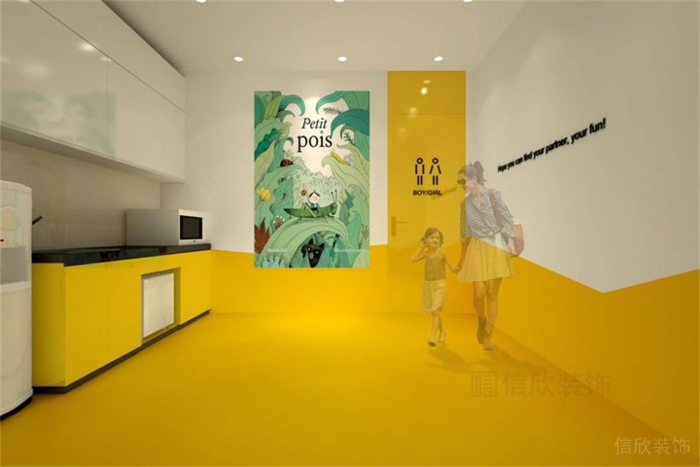 黃色的過道和墻面連為一體,和主題交相呼應(yīng),這樣的設(shè)計不僅使空間靈動活躍,更有一種小孩子喜歡的夏日鮮橙的美妙。