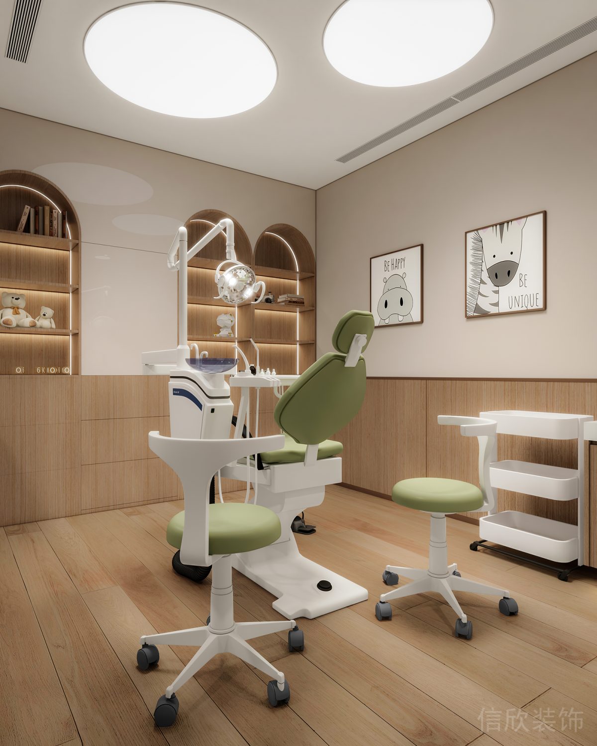 內(nèi)部?jī)砷g摩卡棕烤瓷定制牙科口腔治療室內(nèi)嵌 LED 燈金屬弧形工藝風(fēng),展現(xiàn)了先進(jìn)技術(shù)與專業(yè)設(shè)計(jì)的完美結(jié)合。每一處設(shè)計(jì)都經(jīng)過精心考量,不僅追求視覺美感,更注重功能性與舒適性的融合。信欣裝飾公司的團(tuán)隊(duì)不僅僅是裝修公司,更是專業(yè)團(tuán)隊(duì)的集合,我們的設(shè)計(jì)讓您身臨其境地感受到專業(yè)設(shè)計(jì)所帶來的舒適與愉悅,為診所營(yíng)造了現(xiàn)代、舒適、高端的就診環(huán)境。