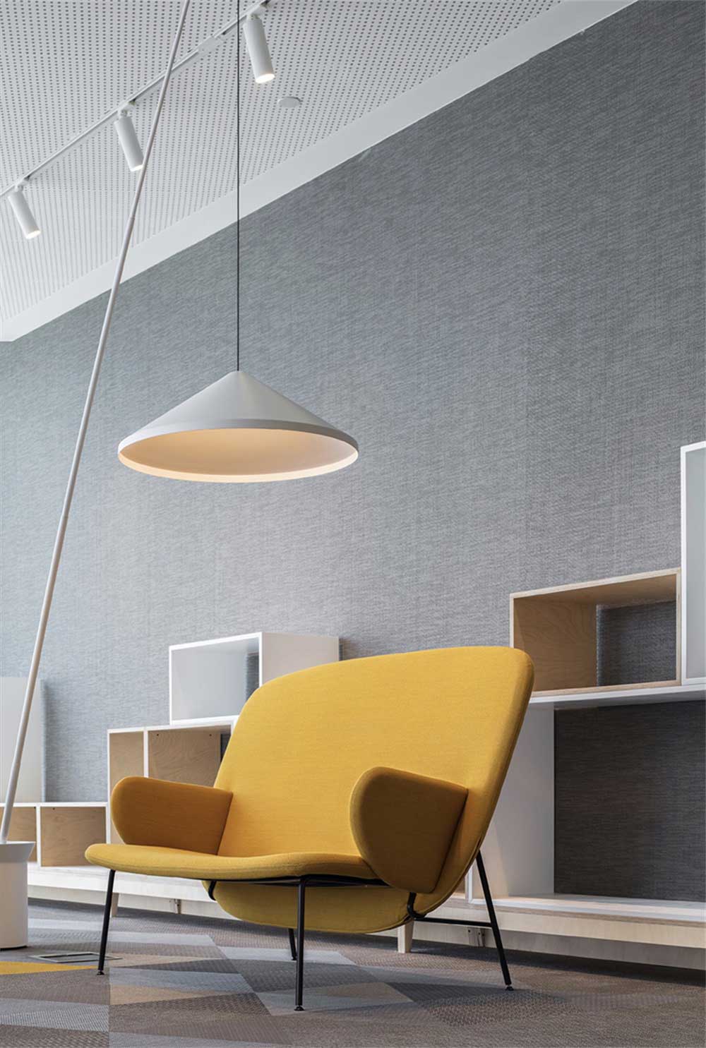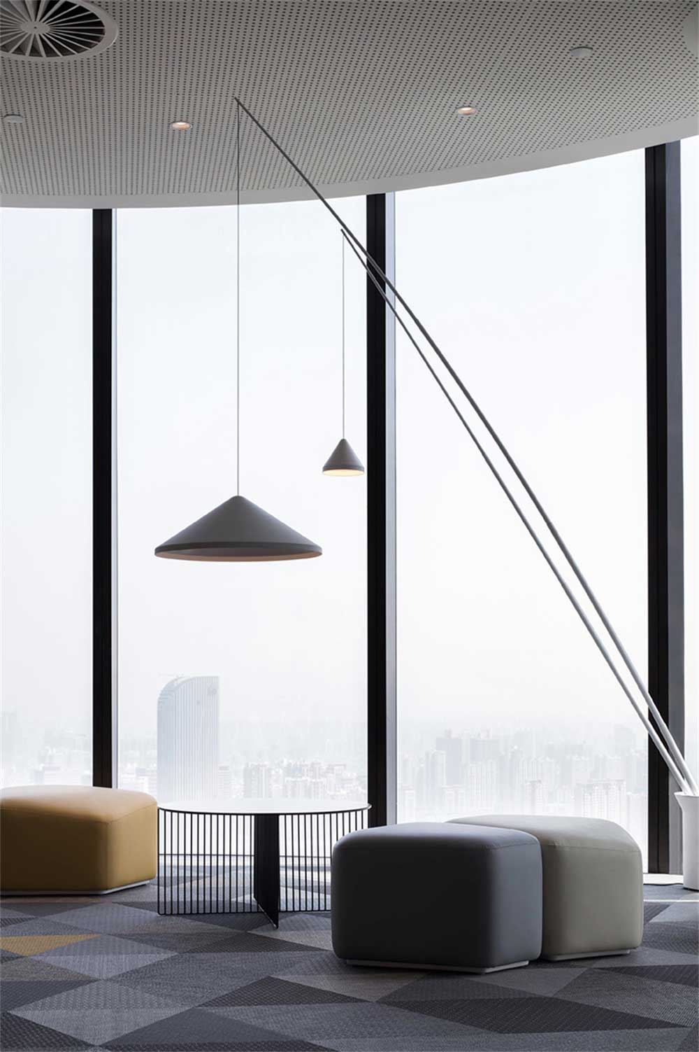 邁科集團(tuán)現(xiàn)代風(fēng)格辦公室洽談區(qū),純白色的洽談區(qū),白色的木質(zhì)沙發(fā),原木風(fēng)的桌子,北歐風(fēng)的藝術(shù)吊燈。