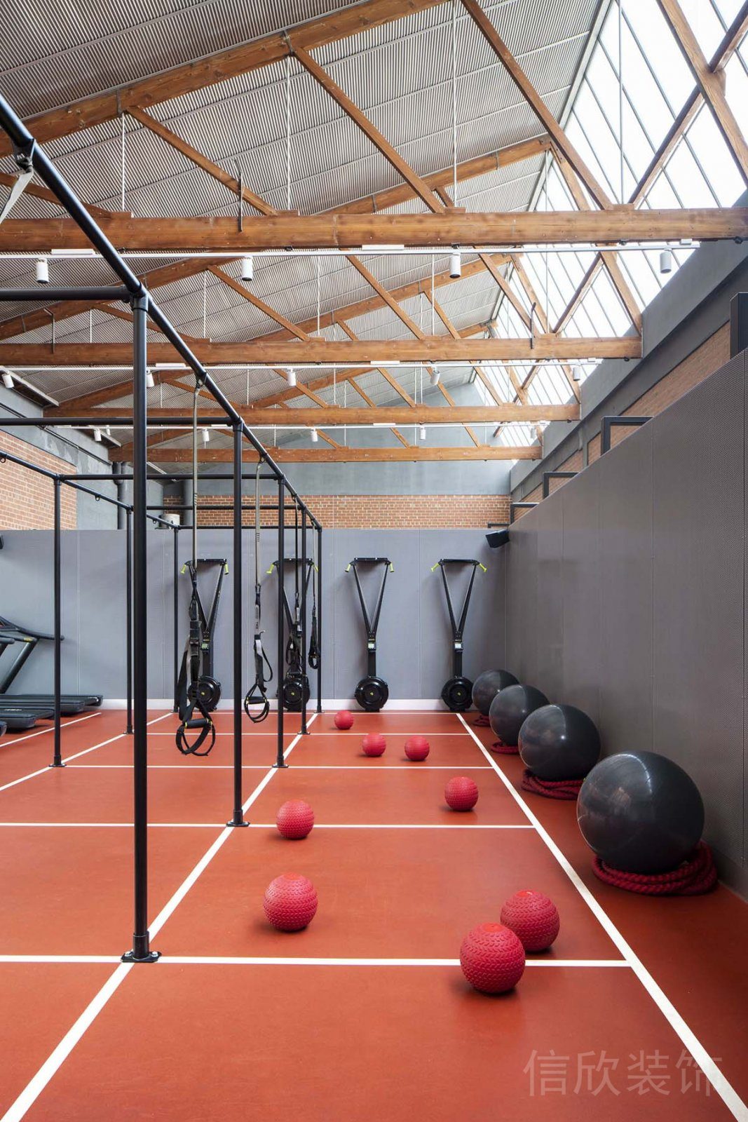 金屬網(wǎng)、金屬梁和鋼鐵框架常見(jiàn)于工業(yè)風(fēng)健身房的設(shè)計(jì)中,這些元素既強(qiáng)調(diào)了結(jié)構(gòu)的穩(wěn)固性,也增加了現(xiàn)代感和工業(yè)氣息。