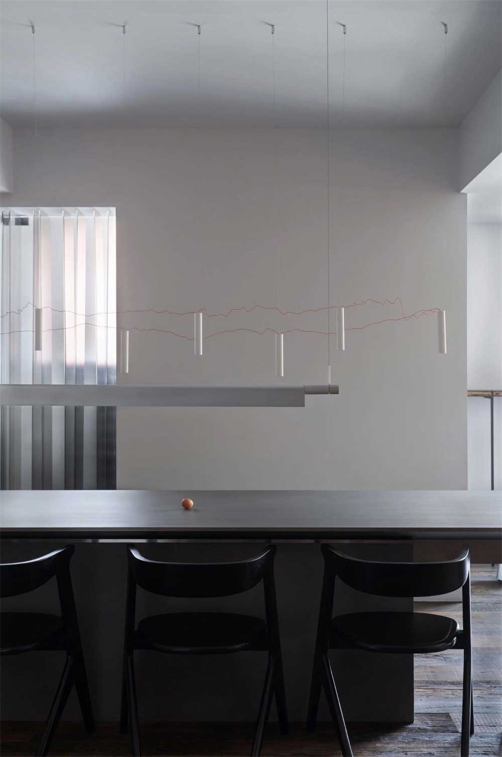 長條形的吧臺(tái)桌,黑色的實(shí)木椅子,既能做洽談區(qū),也是工作之余休閑和洽談的好時(shí)光。