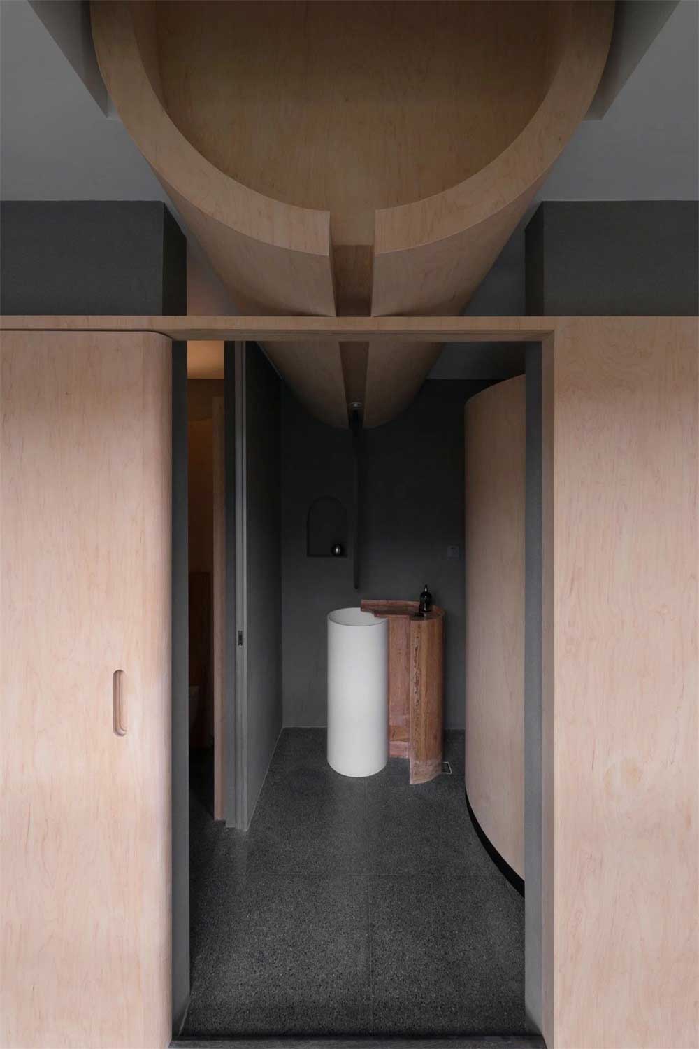 整體原木風(fēng)打造,壁掛式的馬桶設(shè)計(jì),在燈光的照射下,去除了傳統(tǒng)衛(wèi)生間的冰冷,更有一種溫暖私密的情懷。