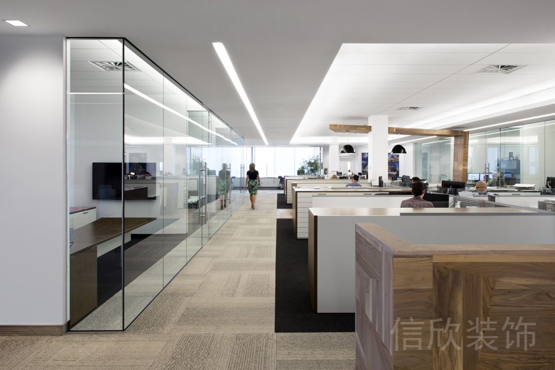 將鋁合金面板與灰色大理石瓷磚相結合,能夠創(chuàng)造出一種既現(xiàn)代又具備高檔感的辦公室環(huán)境。
