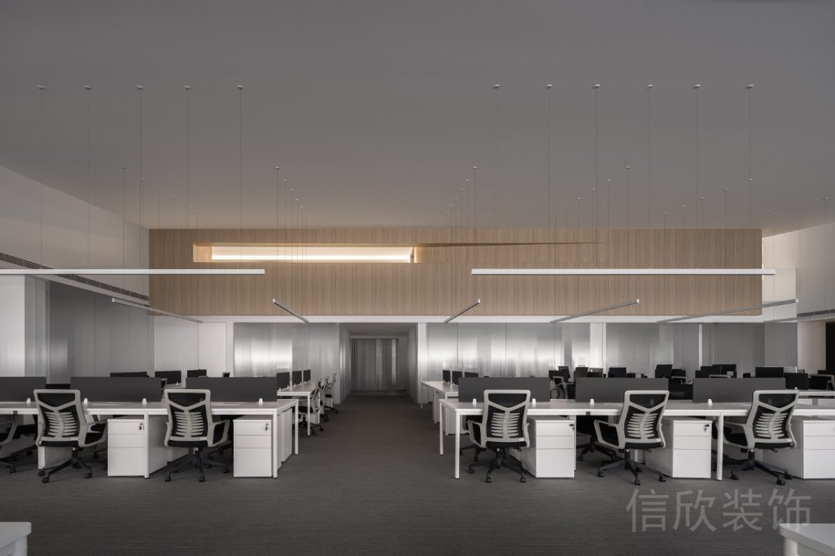 黑色金屬墻體框架增強空間的工業(yè)感和現(xiàn)代感,而木飾面的應(yīng)用則為工位增添溫暖和自然的觸感。