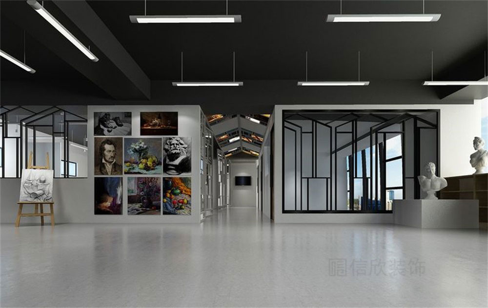 以教育為中心、藝術(shù)感體驗(yàn)經(jīng)營理念為核心。室內(nèi)空間融入特色文化與藝術(shù)元素,營造整體體驗(yàn)式藝術(shù)氛圍,走全面型美術(shù)培訓(xùn)尖端路線。
