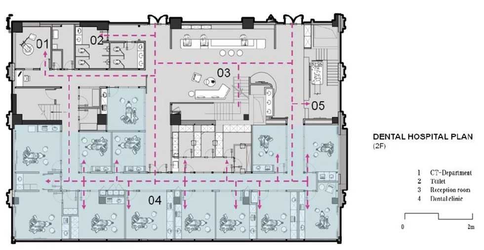 室內(nèi)選用的材料具有持久耐用、觸感柔和以及易于維護(hù)的特征。清潔、純凈與舒適是診室設(shè)計(jì)最重要的三個(gè)因素。