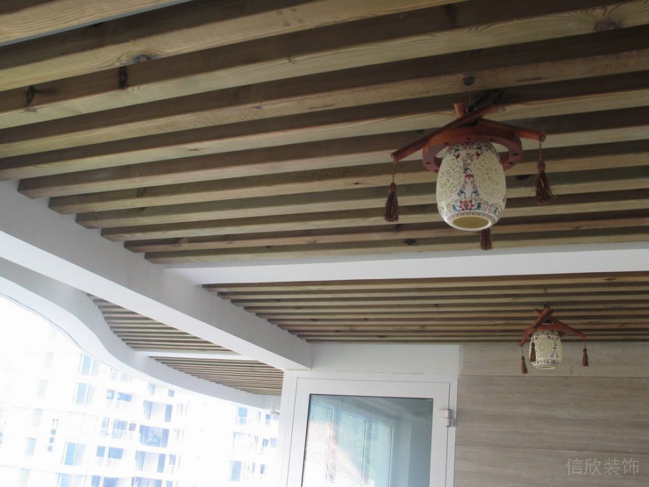 防腐木格柵天花,以松木經(jīng)過防腐處理,深圳裝修公司常用于陽臺或者戶外裝修,不怕風(fēng)吹雨淋。